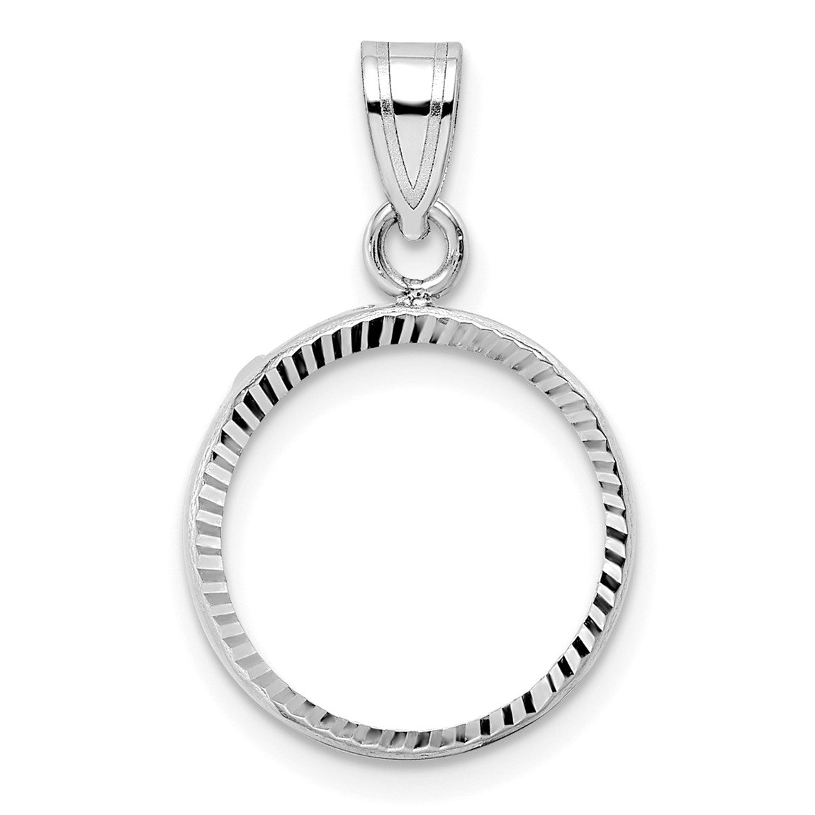 14k White Gold Diamond-cut Prong 14.0mm Coin Bezel Pendant - Fits 1/20 oz Maple Leaf and Other Coins