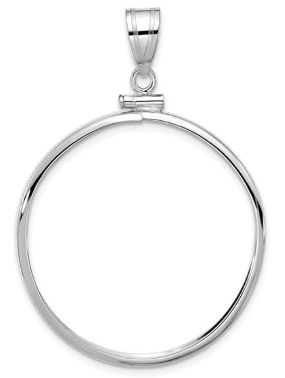 14k White Gold Polished Screw Top 32.7mm x 3mm Coin Bezel Pendant - Fits 1 oz American Eagle, 1 oz Cat, and 1 oz Krugerrand