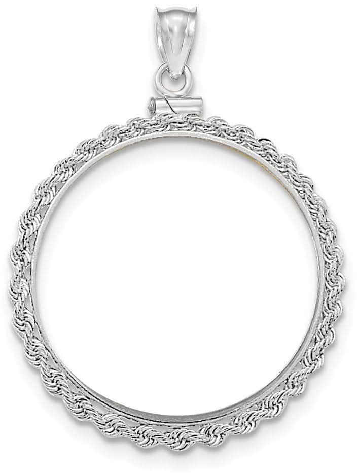 14k White Gold Rope Screw Top 32.7mm x 3mm Coin Bezel Pendant - Fits 1 oz American Eagle, 1 oz Cat, and 1 oz Krugerrand