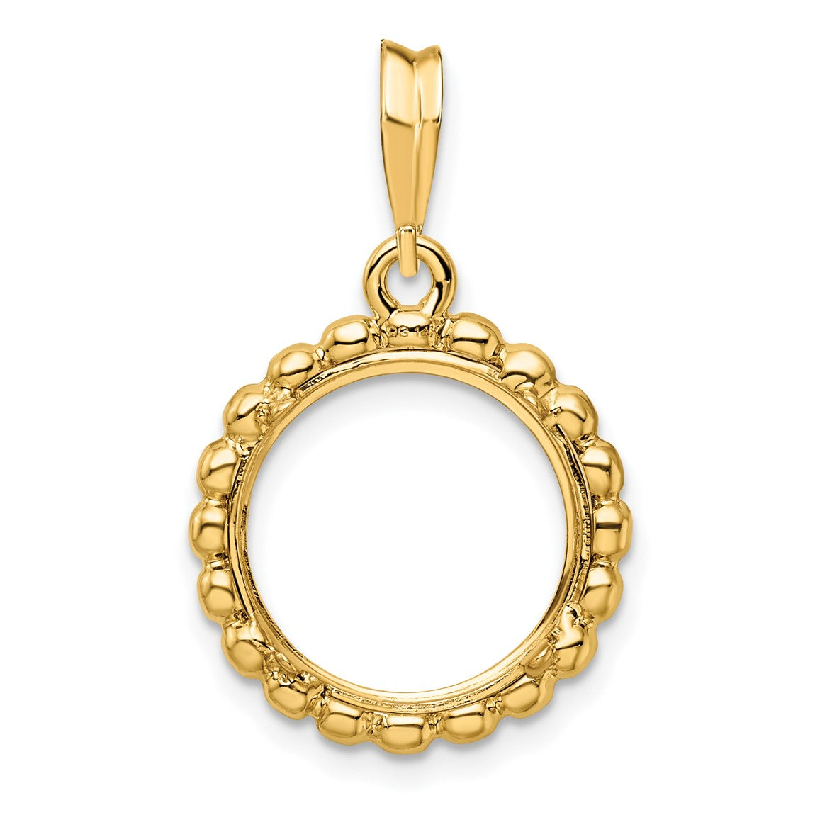 14k Yellow Gold 13mm Beaded Edge Prong Coin Bezel Pendant - Fits 2 Pesos and US $1