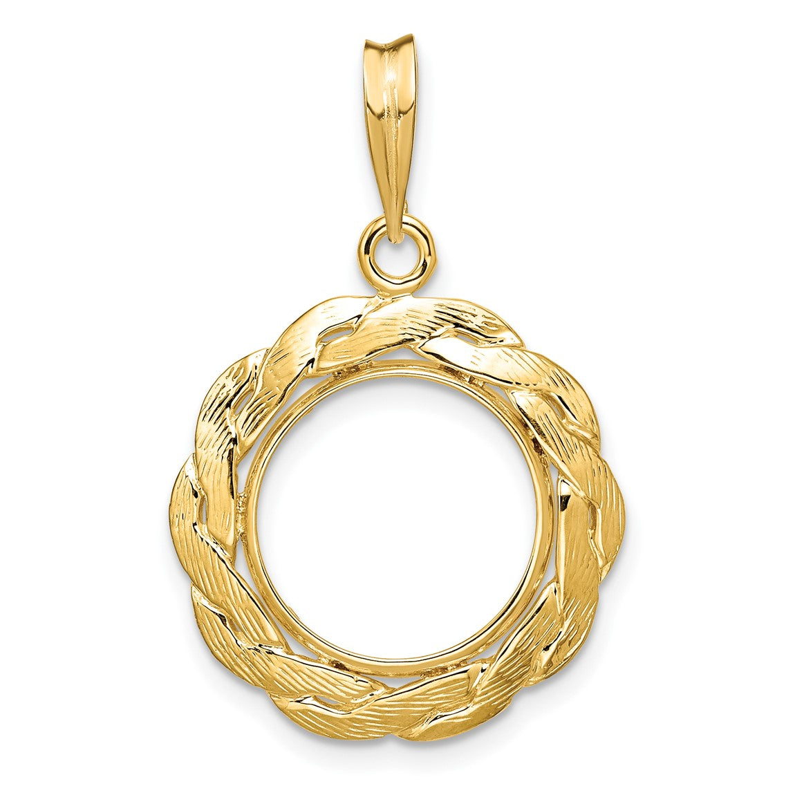 14k Yellow Gold 13mm Braided Prong Coin Bezel Pendant - Fits 2 Pesos and US $1