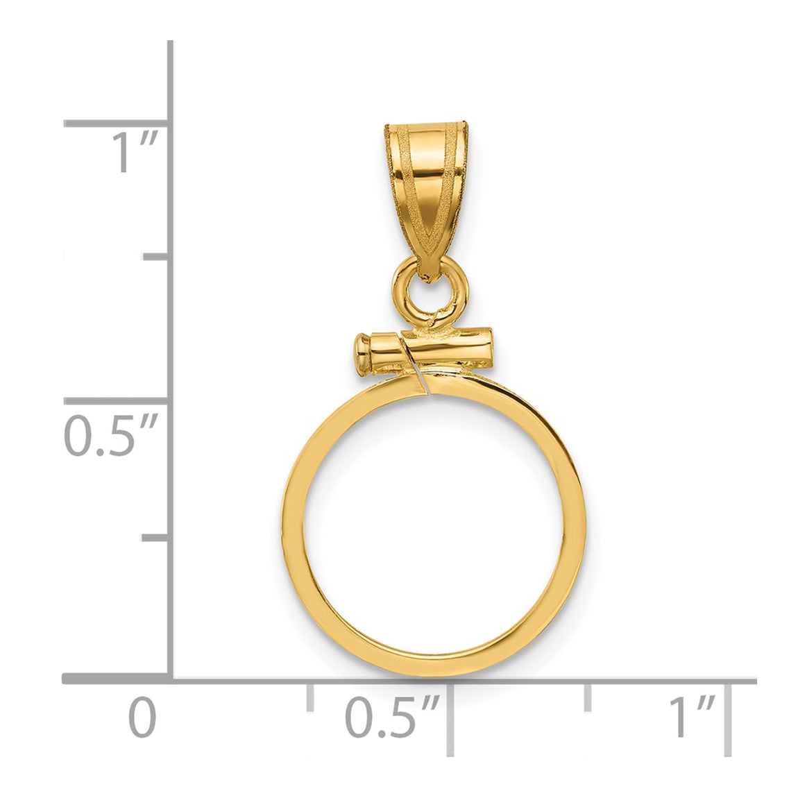 14k Yellow Gold 13mm Polished Screw Top Coin Bezel Pendant - Fits 2 Pesos and US $1 Type 1
