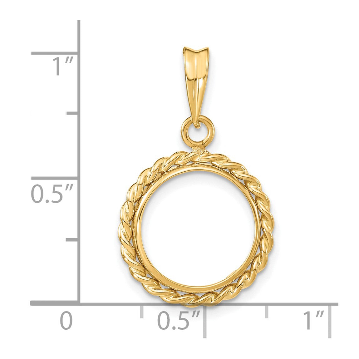 14k Yellow Gold 13mm Twisted Wire Prong Coin Bezel Pendant - Fits 2 Pesos and US $1