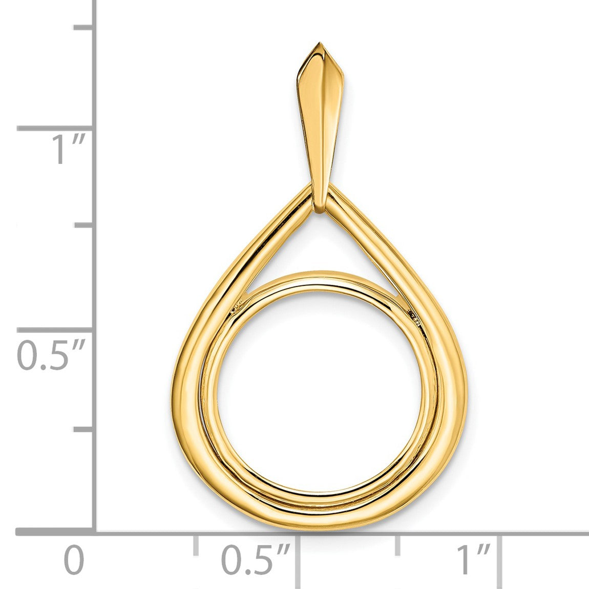 14k Yellow Gold 14mm Polished Teardrop Shaped Prong Coin Bezel Pendant - Fits 1/20 oz Maple Leaf and Other Coins