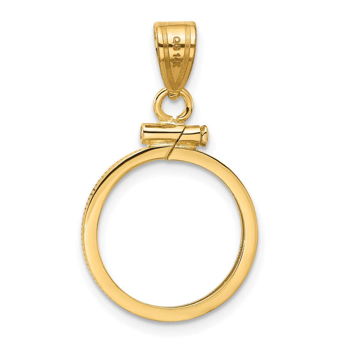 14k Yellow Gold 15.5mm Polished Screw Top Coin Bezel Pendant - Fits 2.5 Pesos