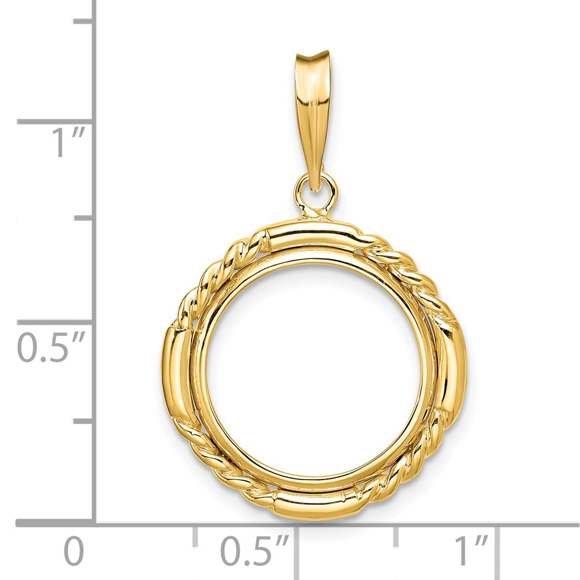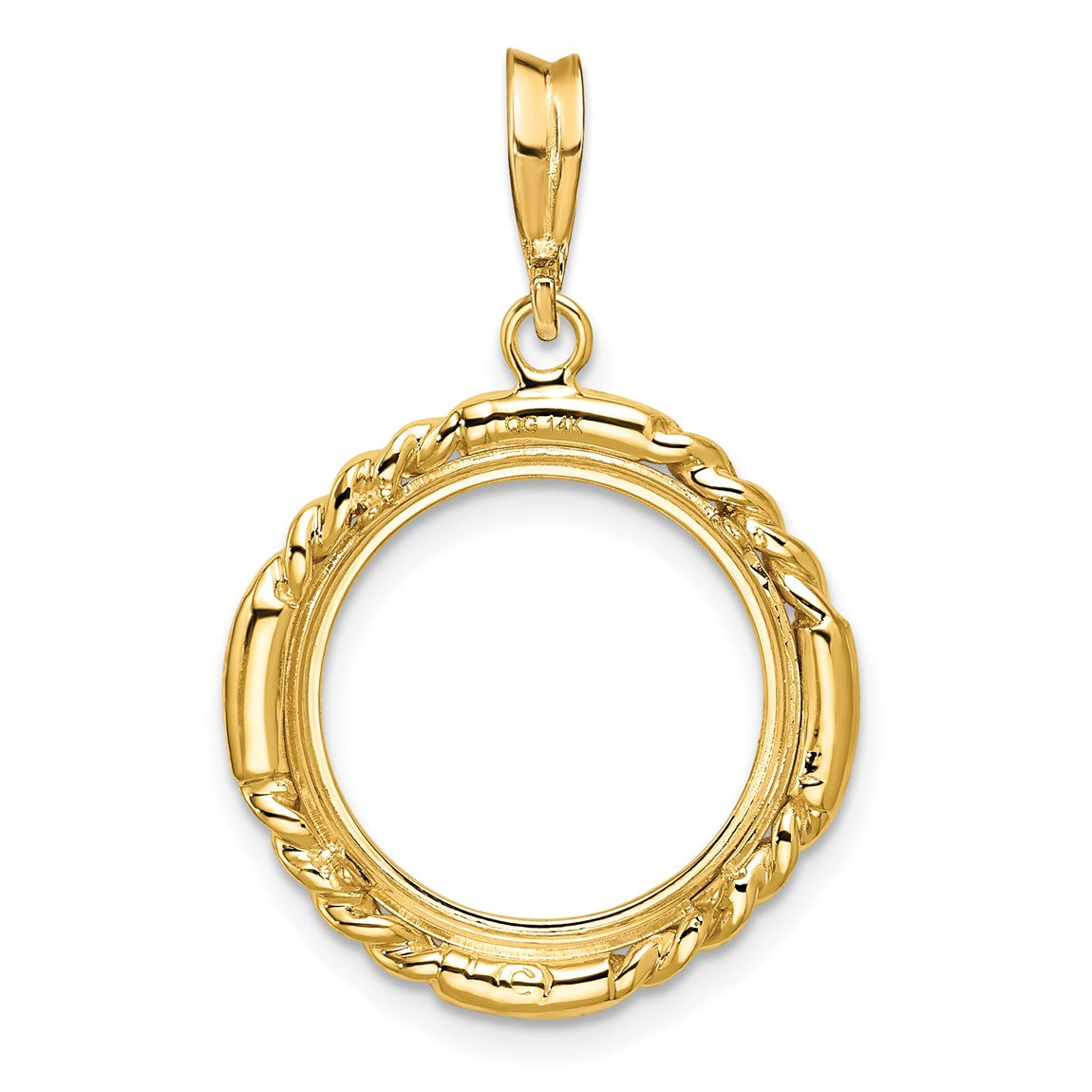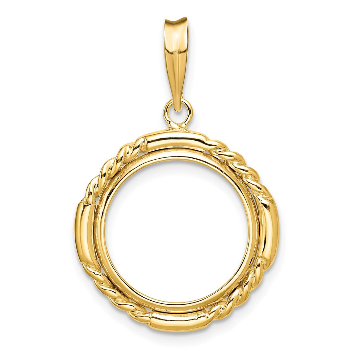 14k Yellow Gold 15mm Quadruple Twist & Bright Prong Coin Bezel Pendant - Fits US $1 Type 2