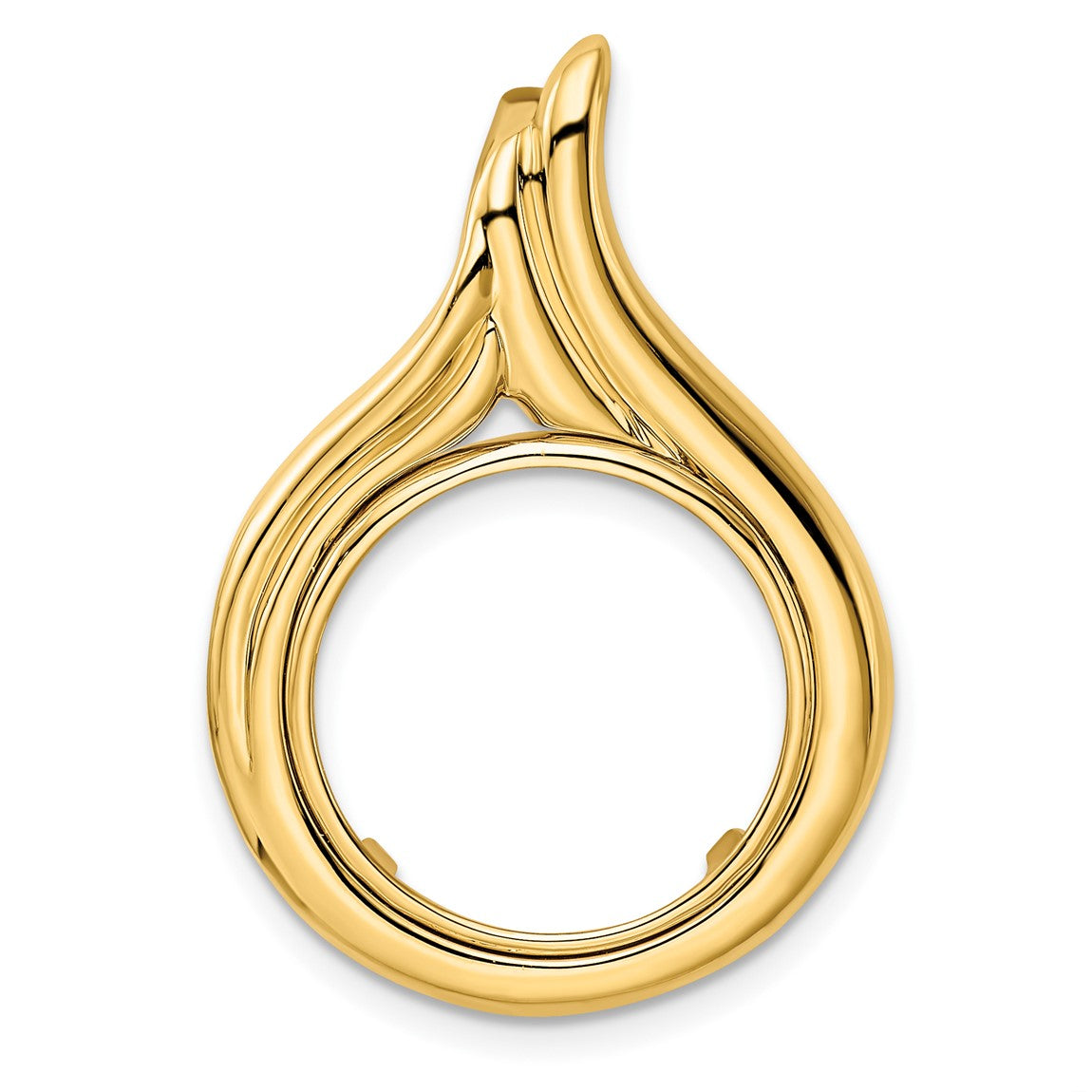 14k Yellow Gold 16.5mm Curved Teardrop Prong Coin Bezel Pendant - Fits 1/10 oz American Eagle and 1/10 oz Krugerrand