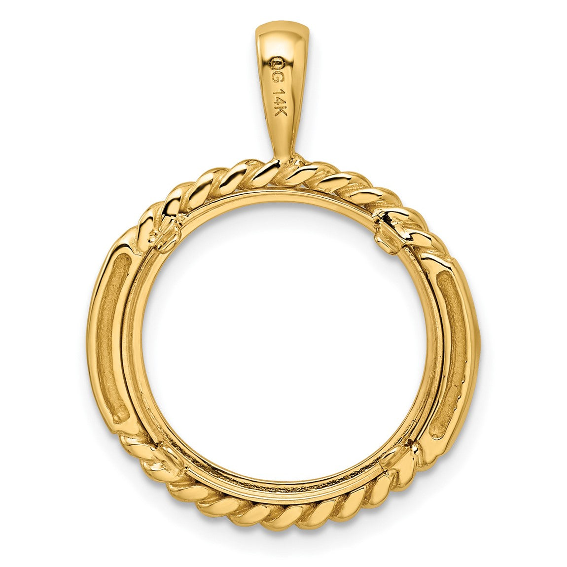 14k Yellow Gold 16.5mm Double Twisted w/ Polished Edge Prong Coin Bezel Pendant - Fits 1/10 oz American Eagle and 1/10 oz Krugerrand
