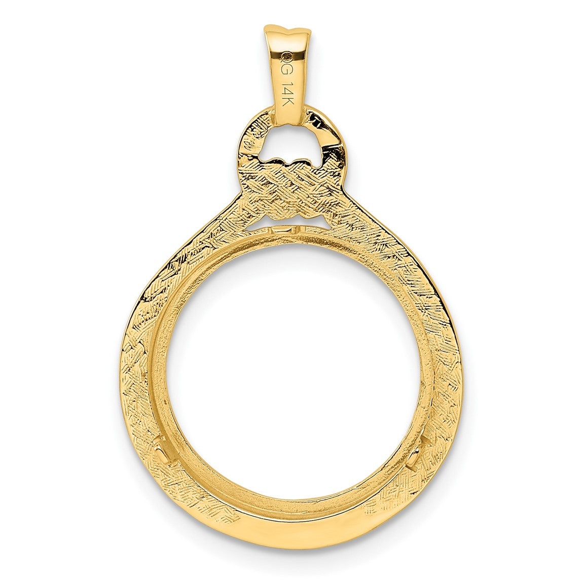14k Yellow Gold 16.5mm Polished Loop & Knot Prong Coin Bezel Pendant - Fits 1/10 oz American Eagle and 1/10 oz Krugerrand