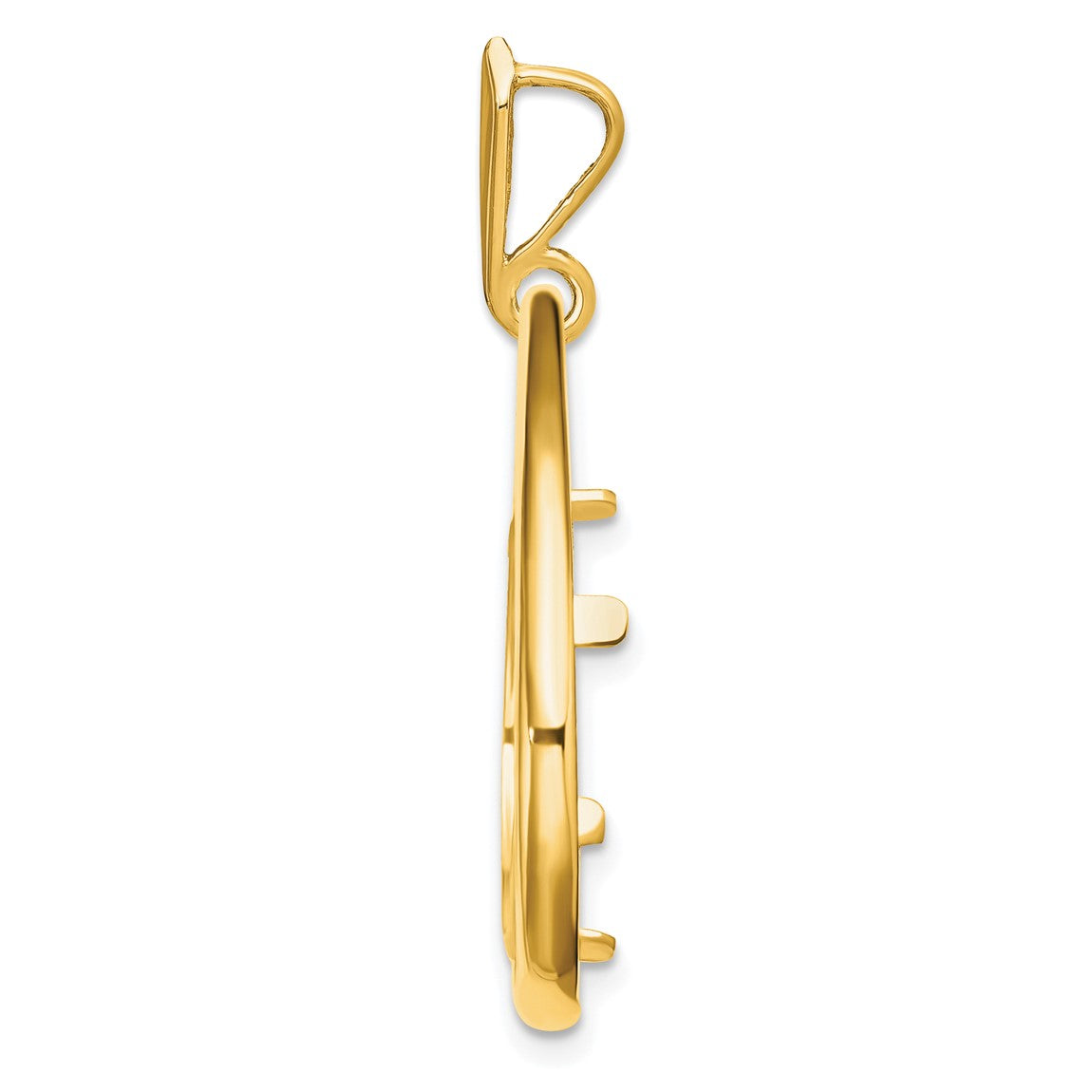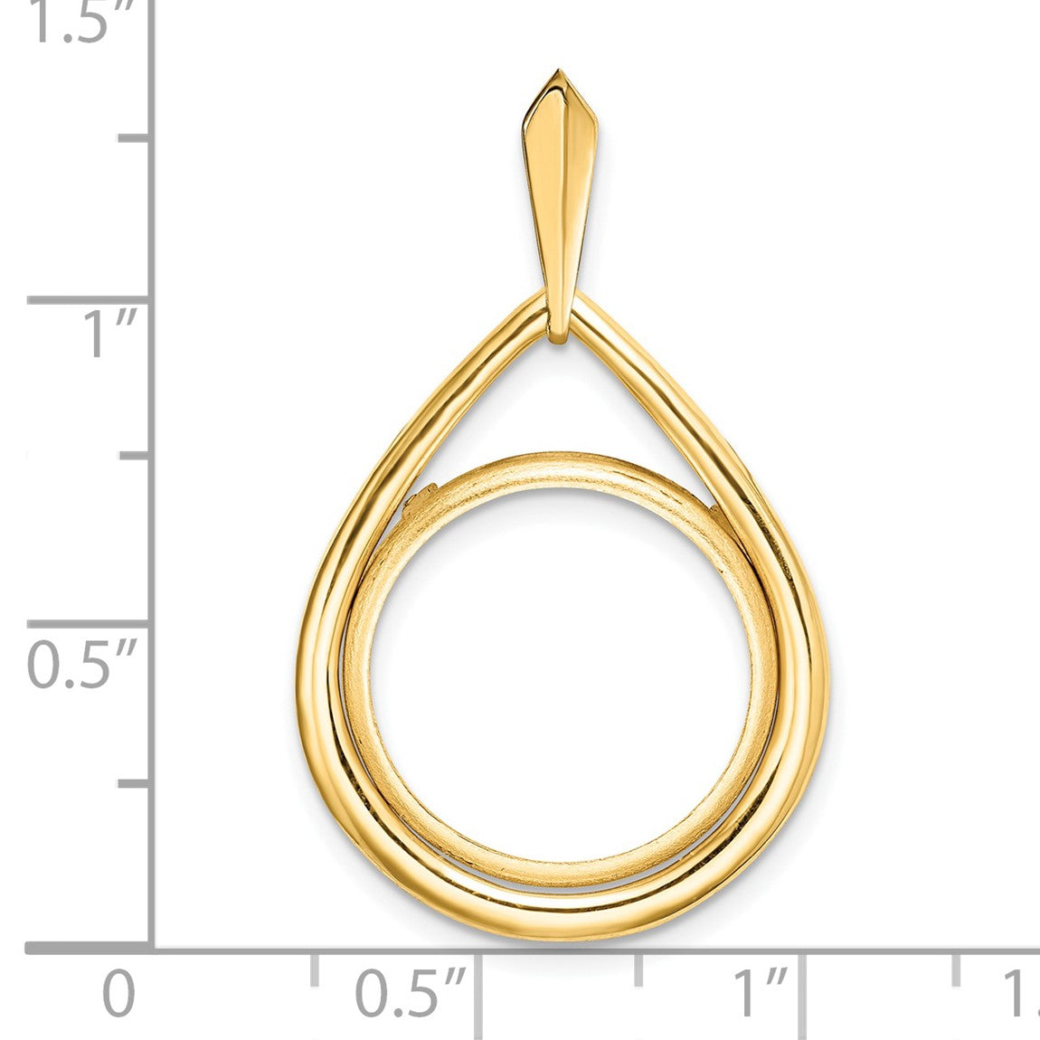 14k Yellow Gold 16.5mm Polished Teardrop Shaped Prong Coin Bezel Pendant - Fits 1/10 oz American Eagle and 1/10 oz Krugerrand