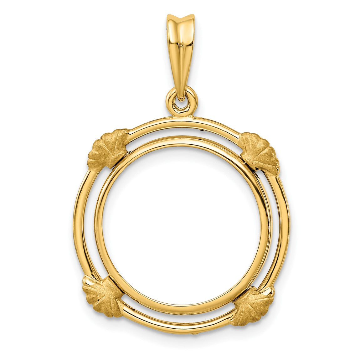 14k Yellow Gold 16.5mm Polished w/ Satin Shell Spokes Prong Coin Bezel Pendant - Fits 1/10 oz American Eagle and 1/10 oz Krugerrand