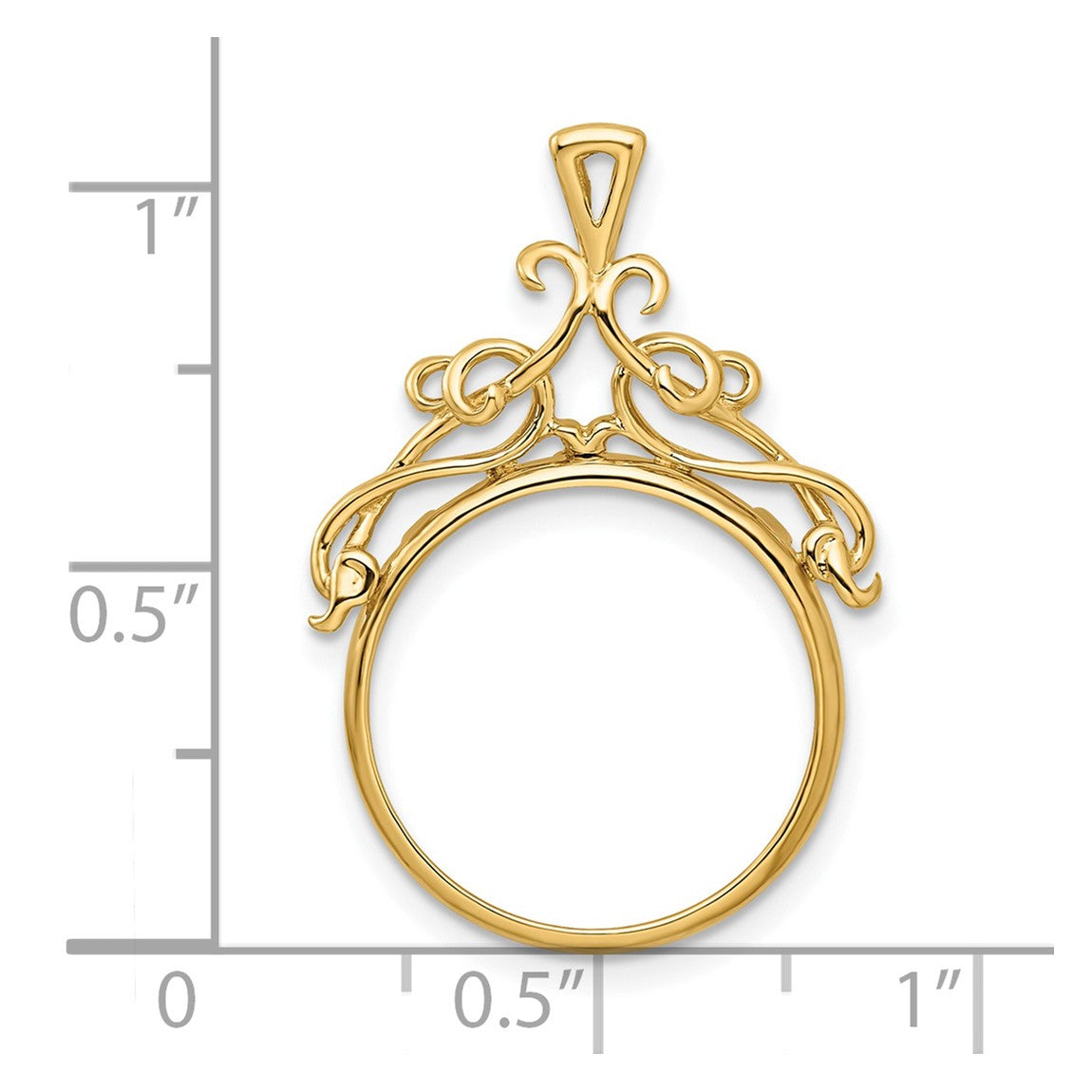 14k Yellow Gold 16.5mm Thin Filigree Top Prong Coin Bezel Pendant - Fits 1/10 oz American Eagle and 1/10 oz Krugerrand