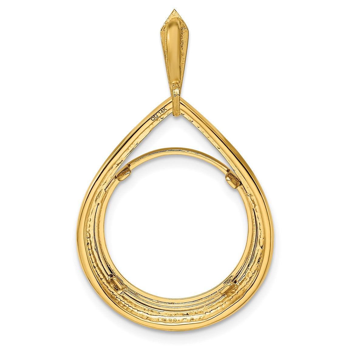 14k Yellow Gold 16mm Polished Teardrop Shaped Prong Coin Bezel Pendant - Fits 1/10 oz Maple Leaf, Maple Leaf, and Other Coins