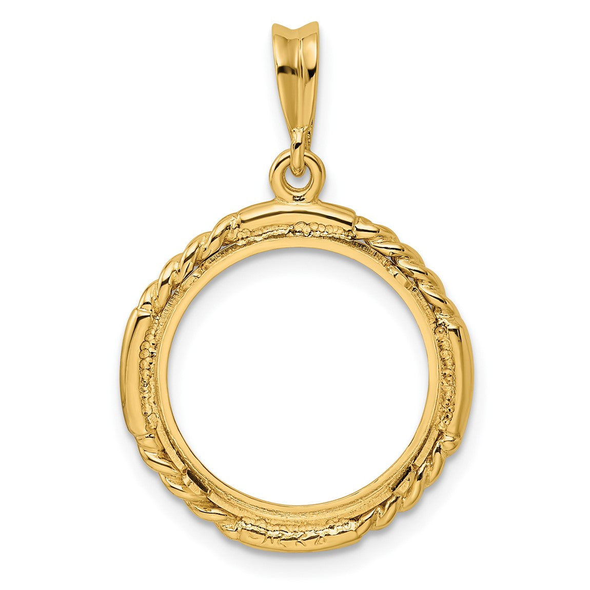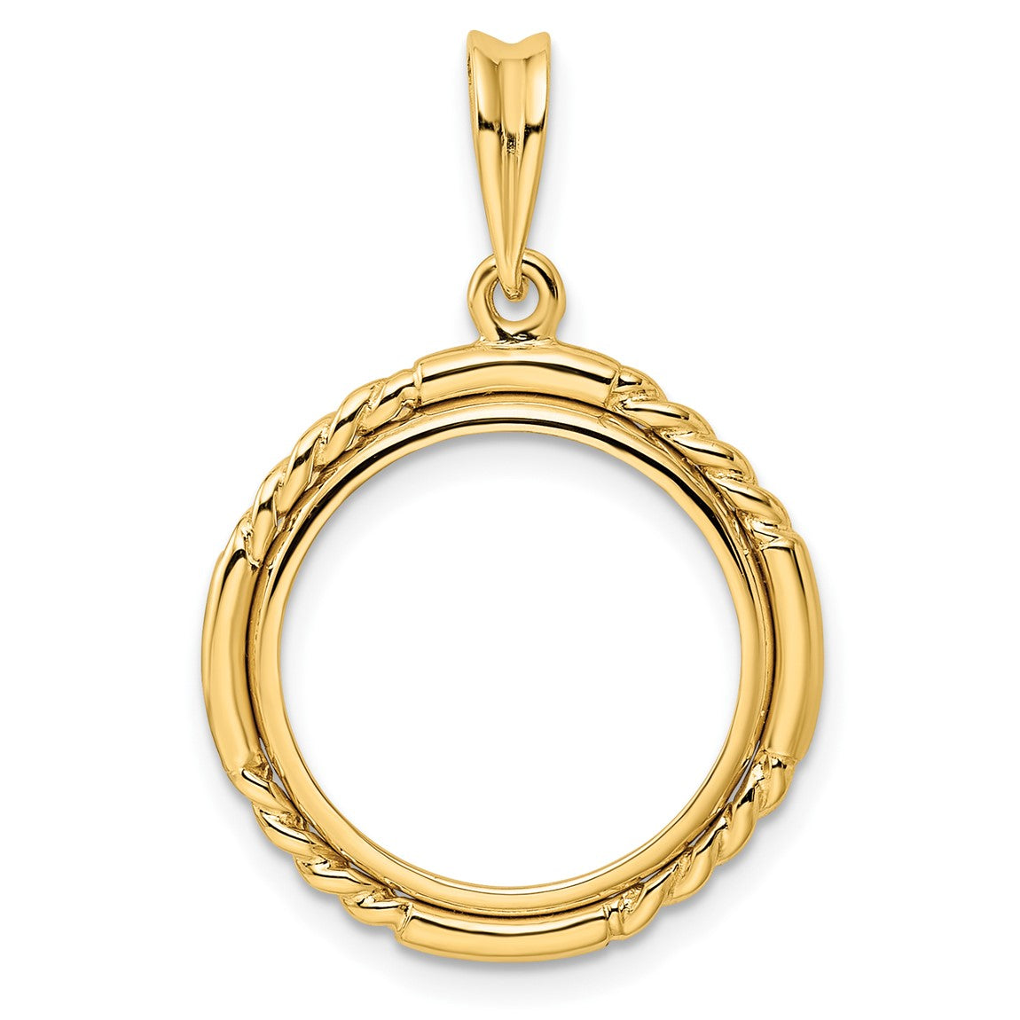 14k Yellow Gold 16mm Quadruple Twist & Bright Prong Coin Bezel Pendant - Fits 1/10 oz Maple Leaf, Maple Leaf, and Other Coins