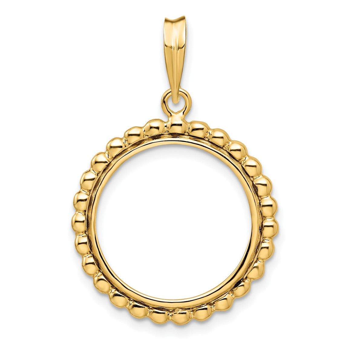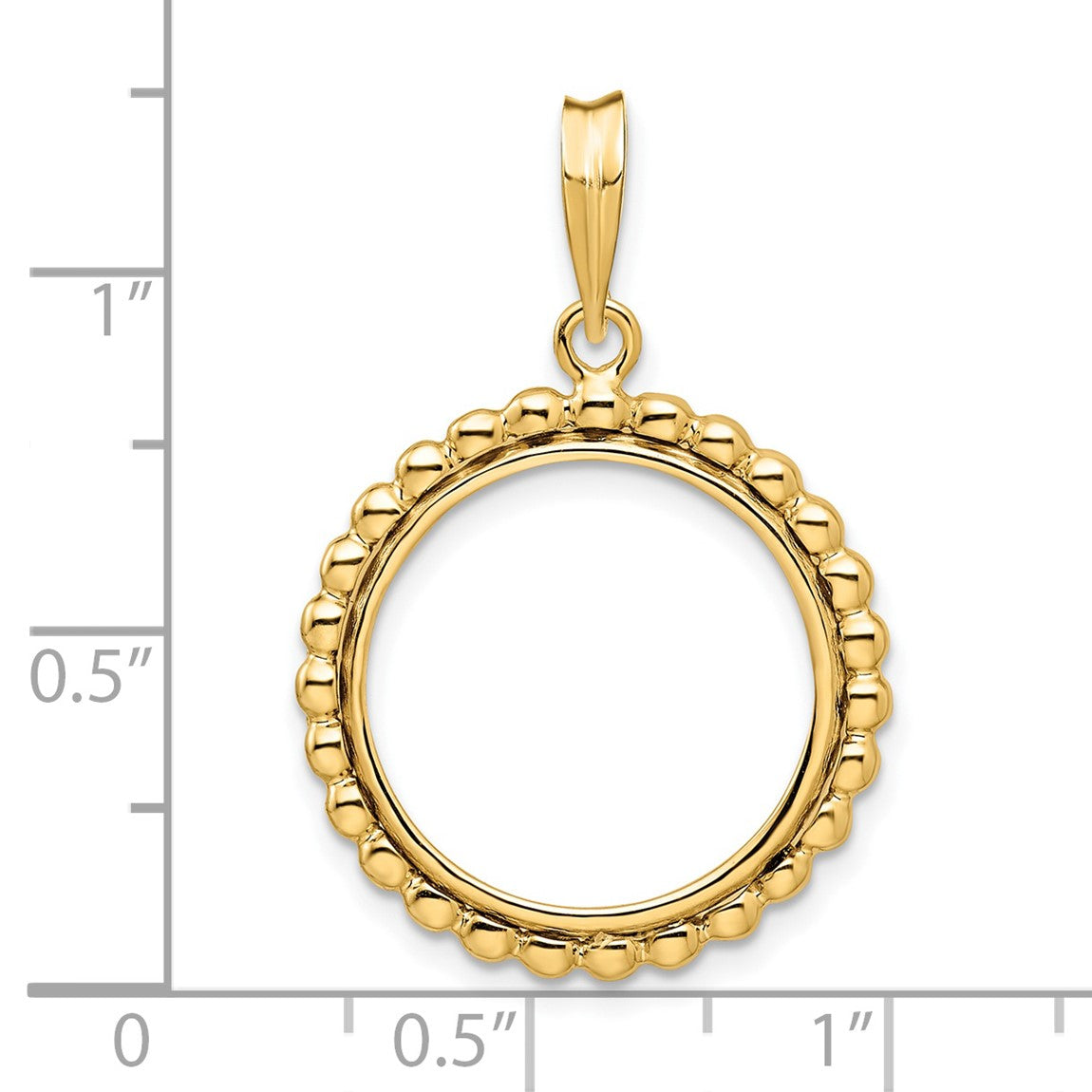 14k Yellow Gold 17.8mm Beaded Edge Prong Coin Bezel Pendant - Fits US $2.50 Liberty and Other Coins