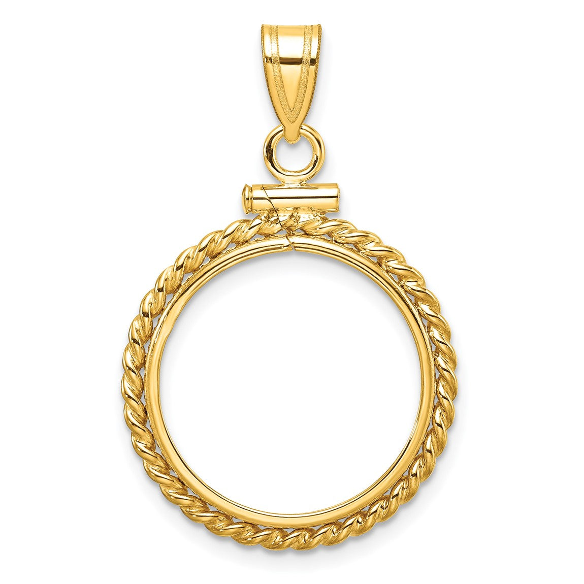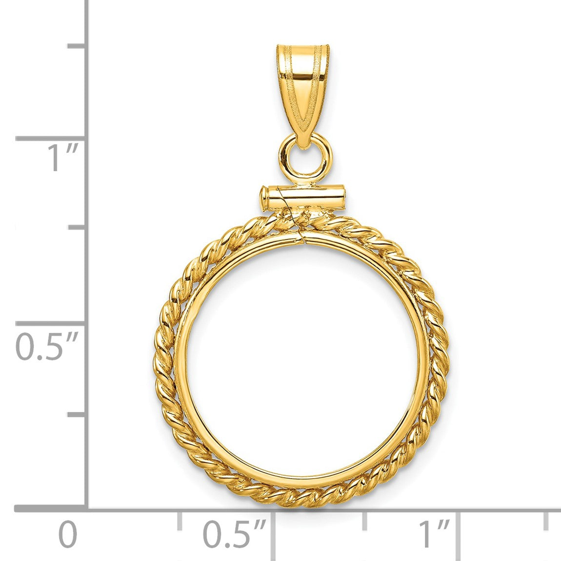 14k Yellow Gold 17.8mm Twisted Wire Screw Top Coin Bezel Pendant - Fits US $2.50 Liberty and Other Coins