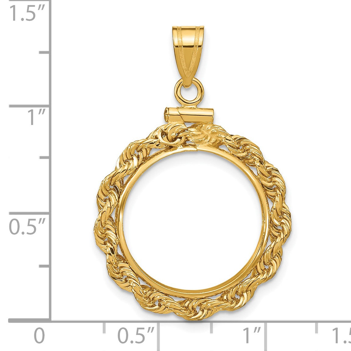 14k Yellow Gold 18mm 3mm Rope Screw Top Coin Bezel Pendant - Fits 1/10 oz Cat
