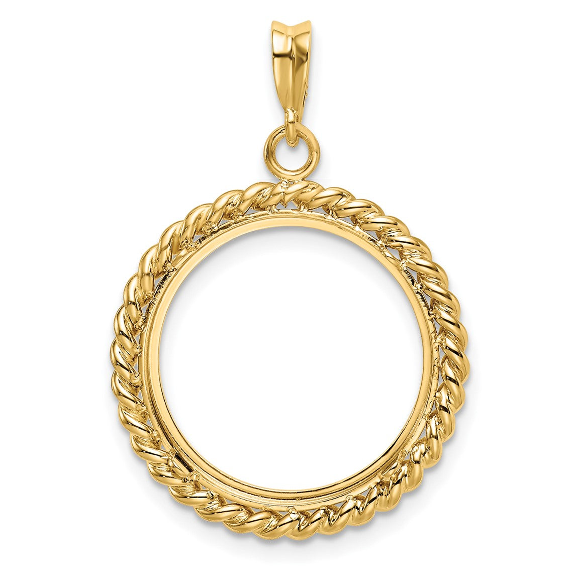 14k Yellow Gold 18mm Twisted Wire Prong Coin Bezel Pendant - Fits 1/10 oz Cat, 1/10 oz Panda, and US Dime