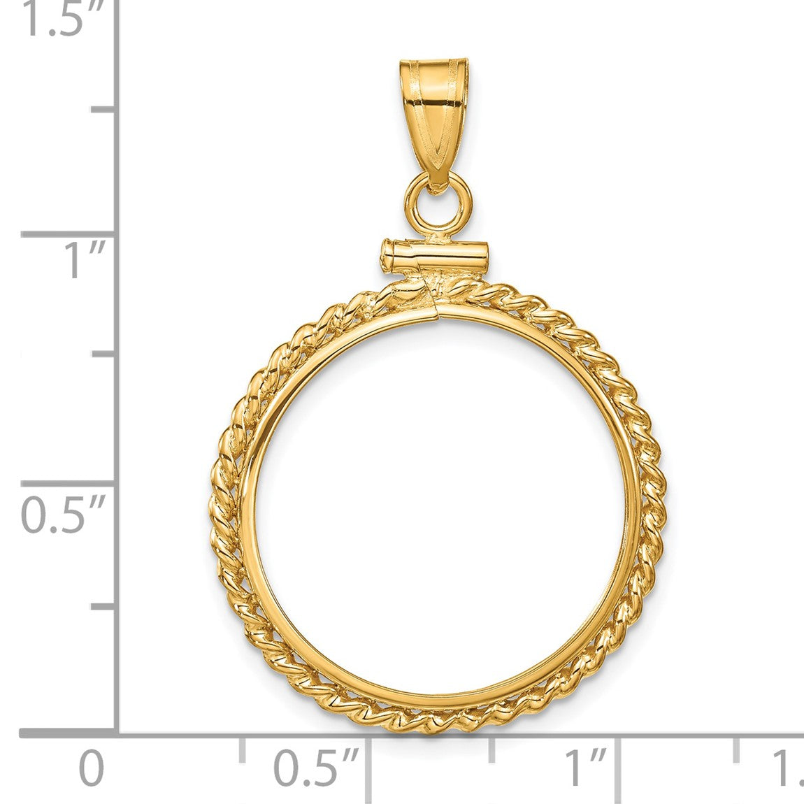 14k Yellow Gold 20.2mm Twisted Wire Screw Top Coin Bezel Pendant - Fits 1/4 oz Maple Leaf
