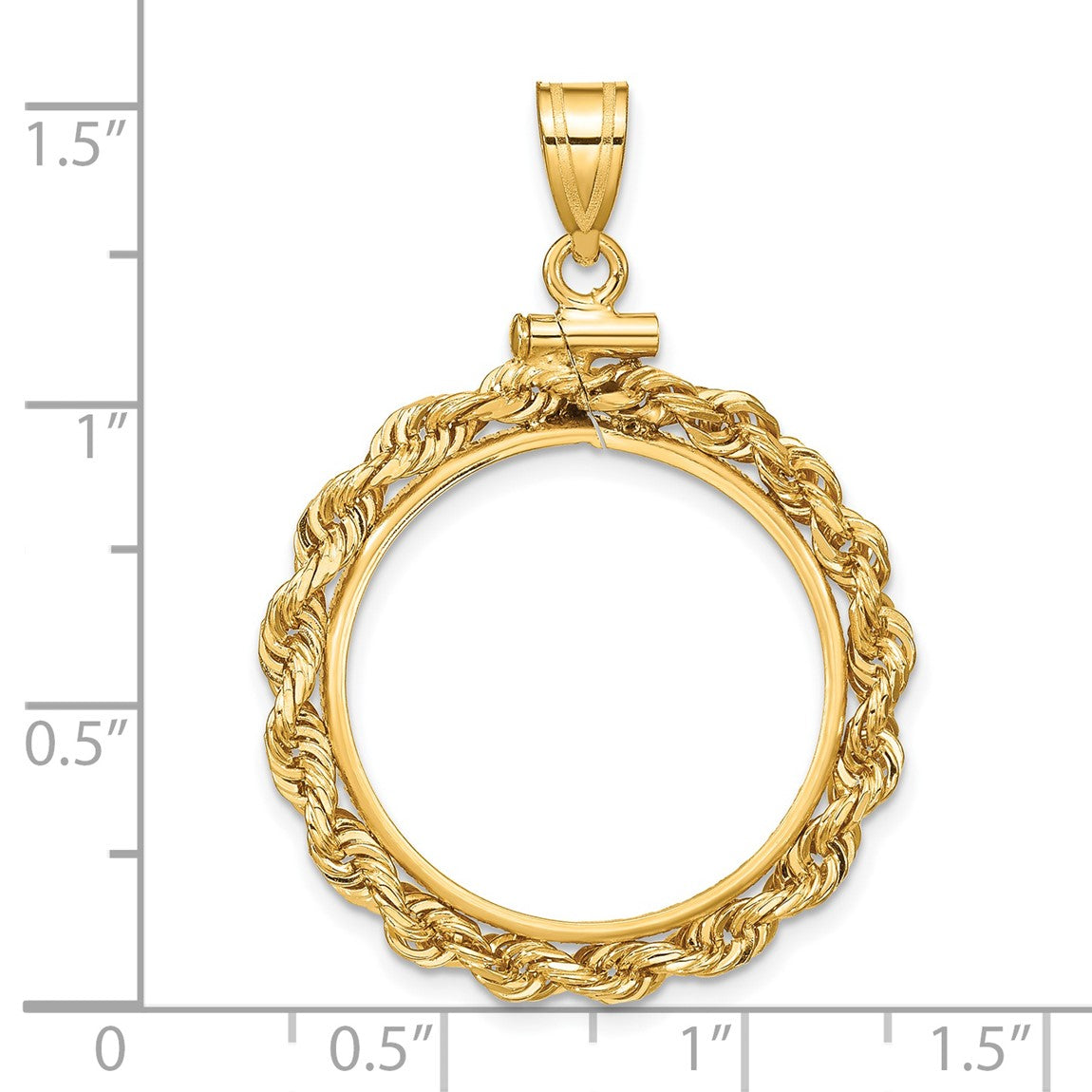 14k Yellow Gold 21.6mm 3mm Rope Screw Top Coin Bezel Pendant - Fits US $5 Bald Eagle, US $5 Congressional, US $5 Liberty, and Other Coins