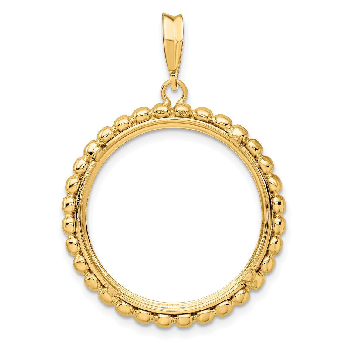 14k Yellow Gold 21.6mm Beaded Edge Prong Coin Bezel Pendant - Fits US $5 Bald Eagle, US $5 Congressional, US $5 Liberty, and Other Coins