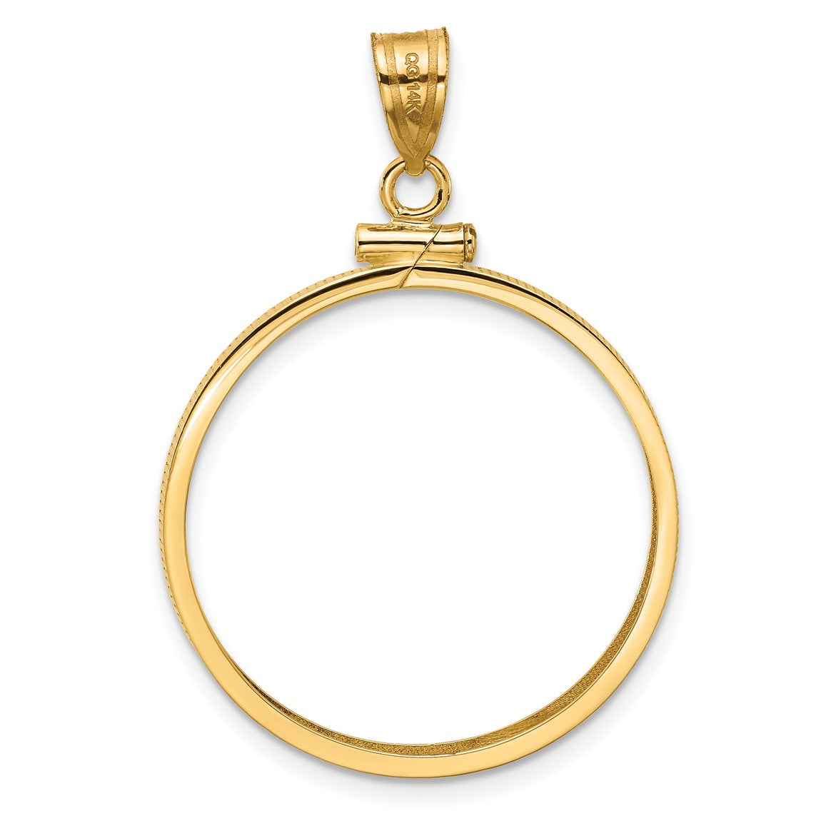 14k Yellow Gold 25.0mm Polished Screw Top Coin Bezel Pendant - Fits 1/2 oz Maple Leaf and Other Coins