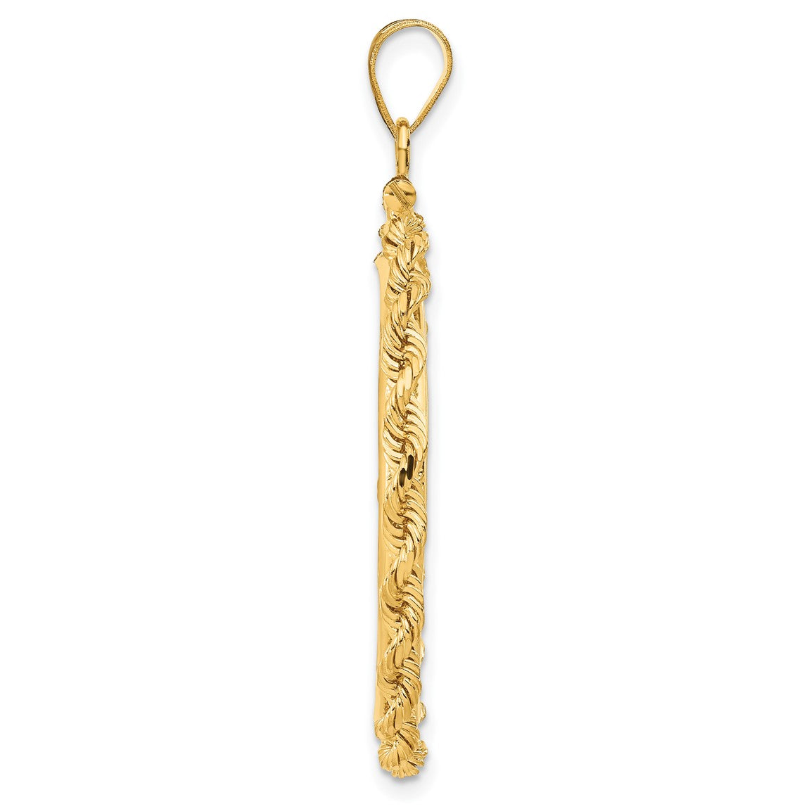 14k Yellow Gold 27mm 3mm Rope Screw Top Coin Bezel Pendant - Fits 1/2 oz American Eagle, US $10 Liberty, and Other Coins