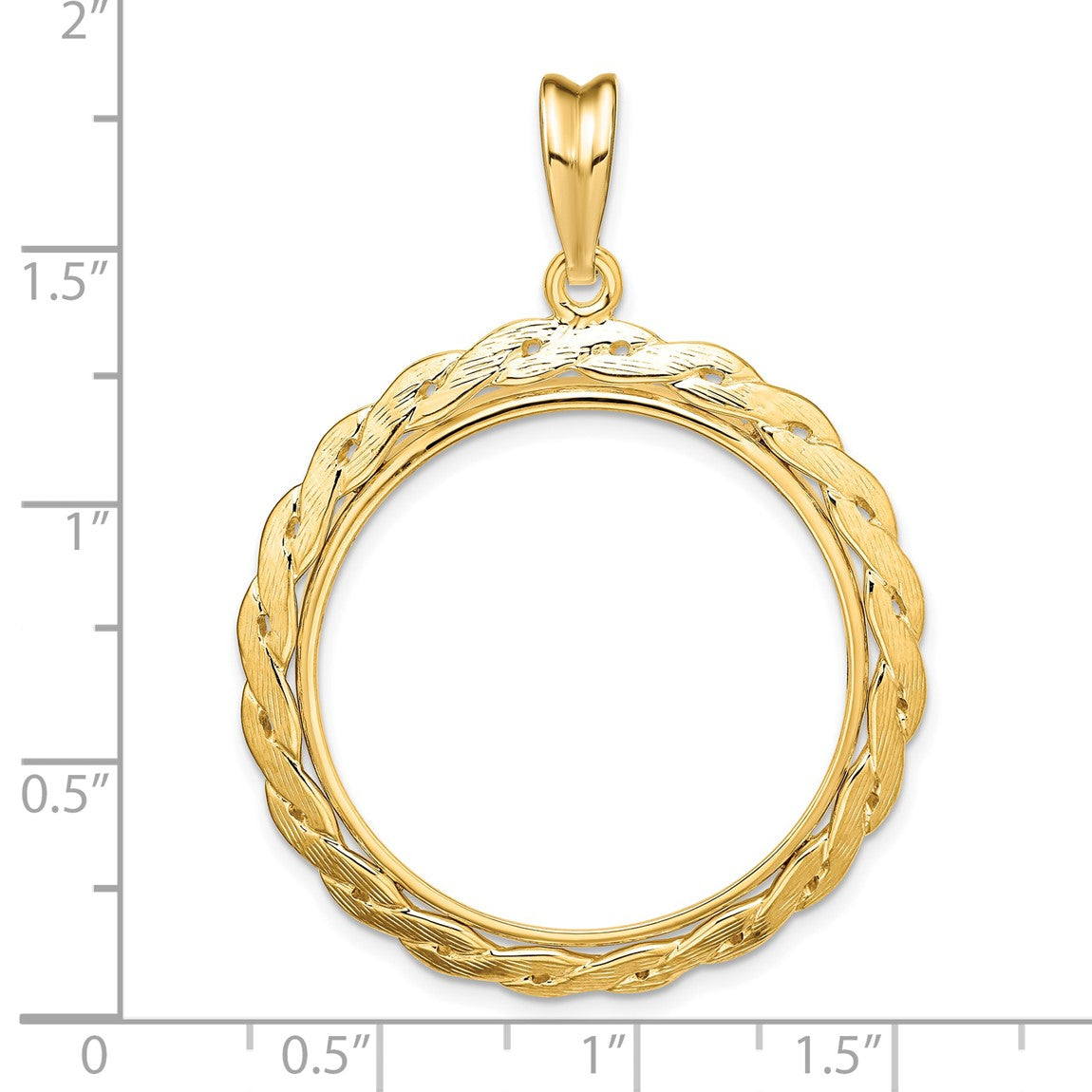 14k Yellow Gold 27mm Braided Prong Coin Bezel Pendant - Fits 1/2 oz American Eagle, US $10 Liberty, and Other Coins