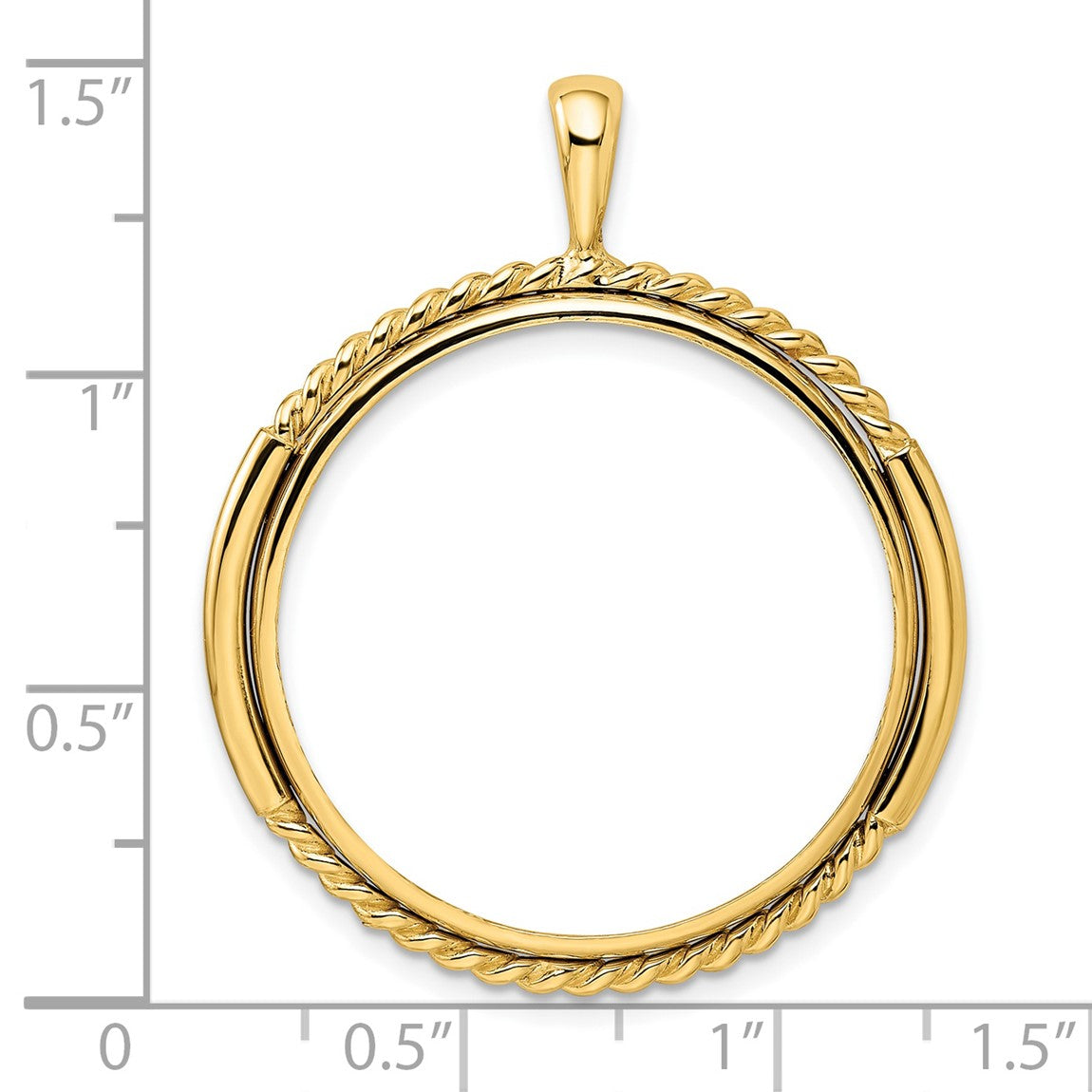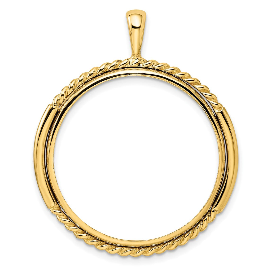 14k Yellow Gold 27mm Double Twisted w/ Polished Edge Prong Coin Bezel Pendant - Fits 1/2 oz American Eagle, US $10 Liberty, and Other Coins