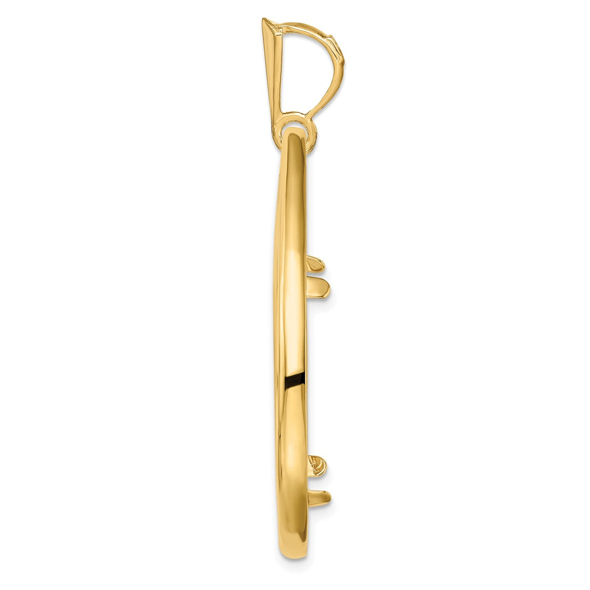 14k Yellow Gold 27mm Polished Teardrop Shaped Prong Coin Bezel Pendant - Fits 1/2 oz American Eagle, US $10 Liberty, and Other Coins