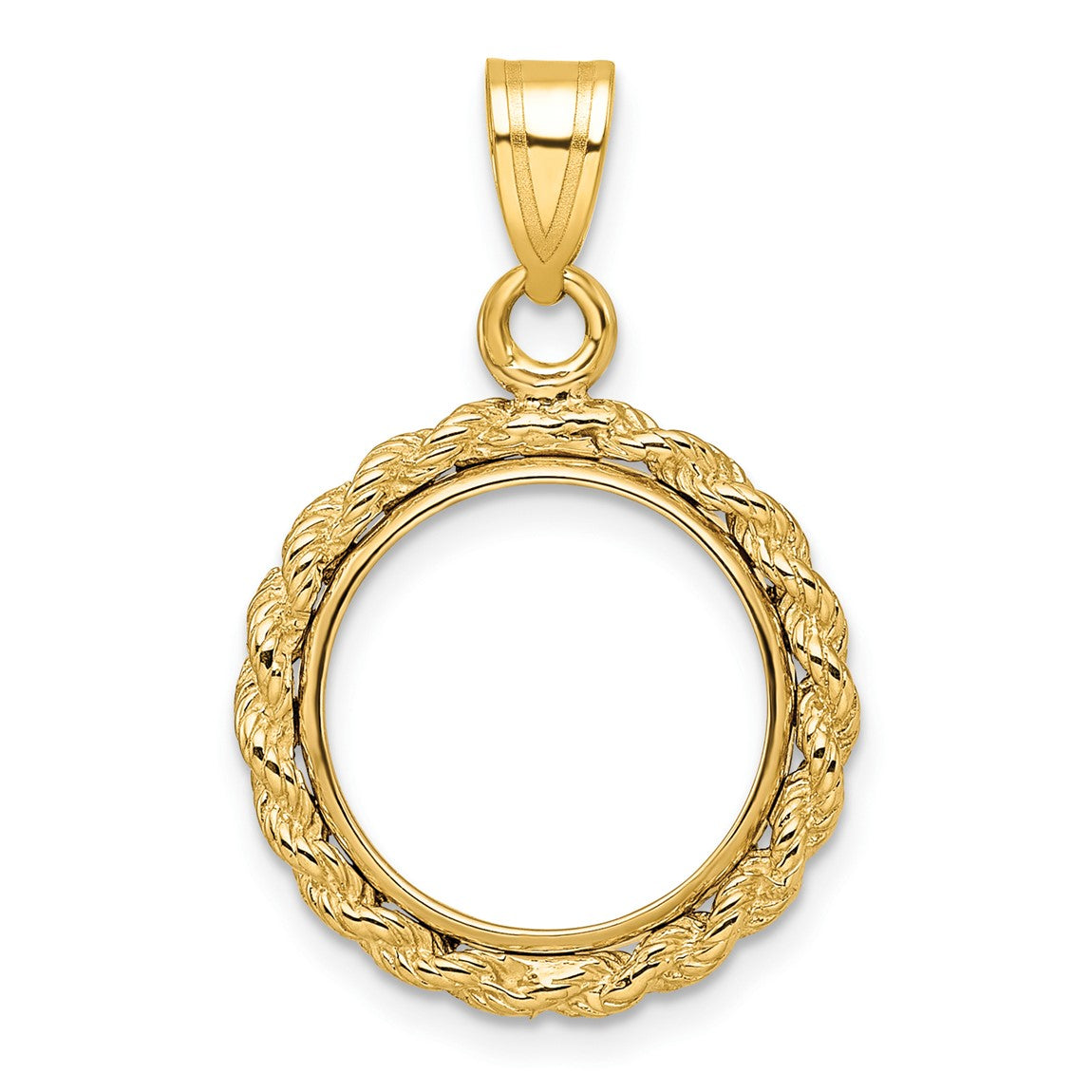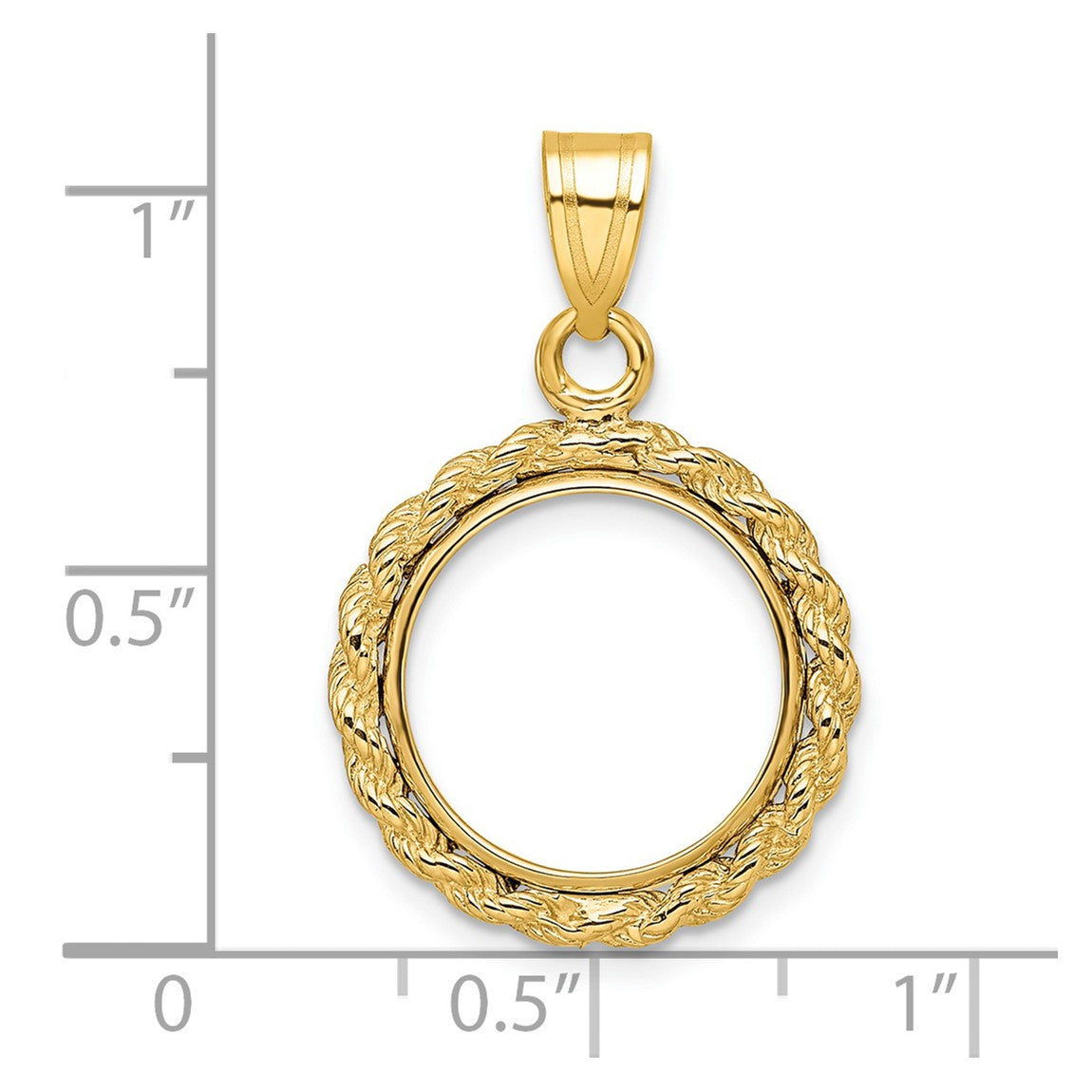 14k Yellow Gold 2mm Rope Edge 14mm Prong Coin Bezel Pendant - Fits 1/20 oz Maple Leaf and Other Coins