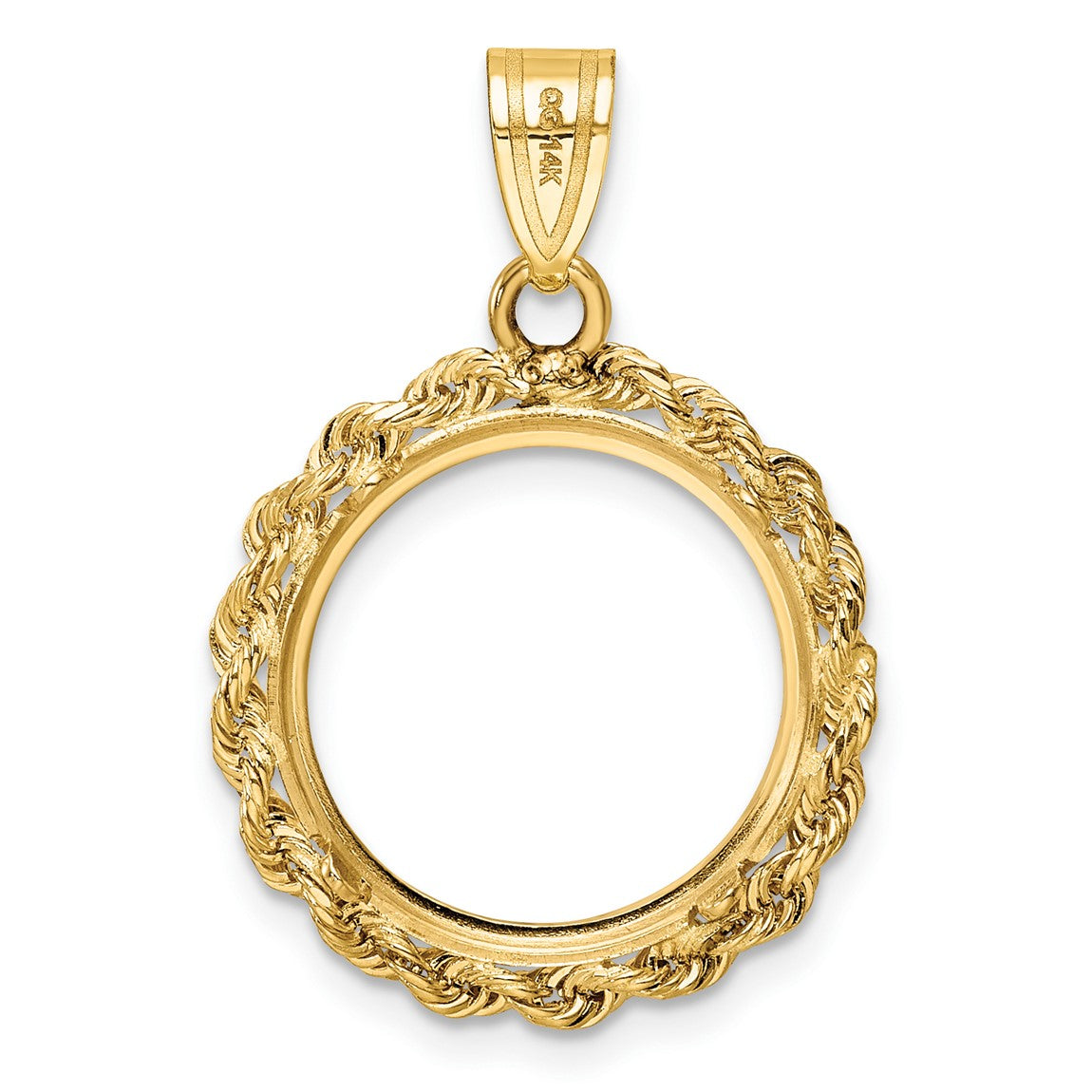 14k Yellow Gold 2mm Rope Edge 15.5mm Prong Coin Bezel Pendant - Fits 2.5 Pesos