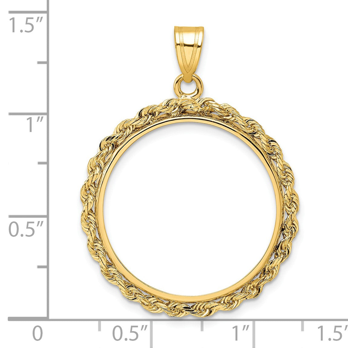 14k Yellow Gold 2mm Rope Edge 22.6mm Prong Coin Bezel Pendant - Fits 10 Pesos and US $5 Liberty Classic