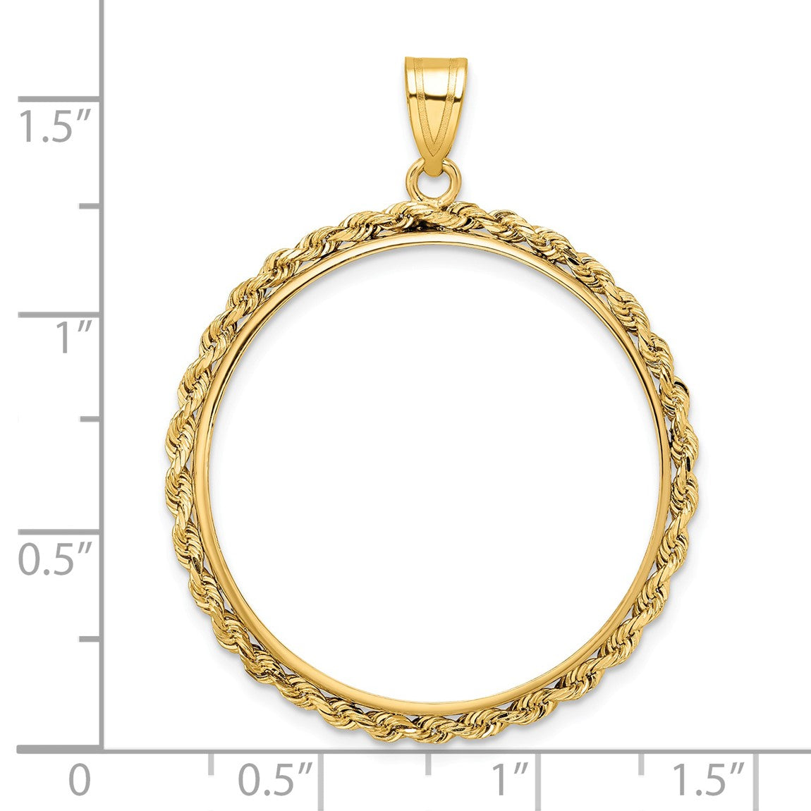 14k Yellow Gold 2mm Rope Edge 30mm Prong Coin Bezel Pendant - Fits 1 oz Maple Leaf and 1/2 oz Cat