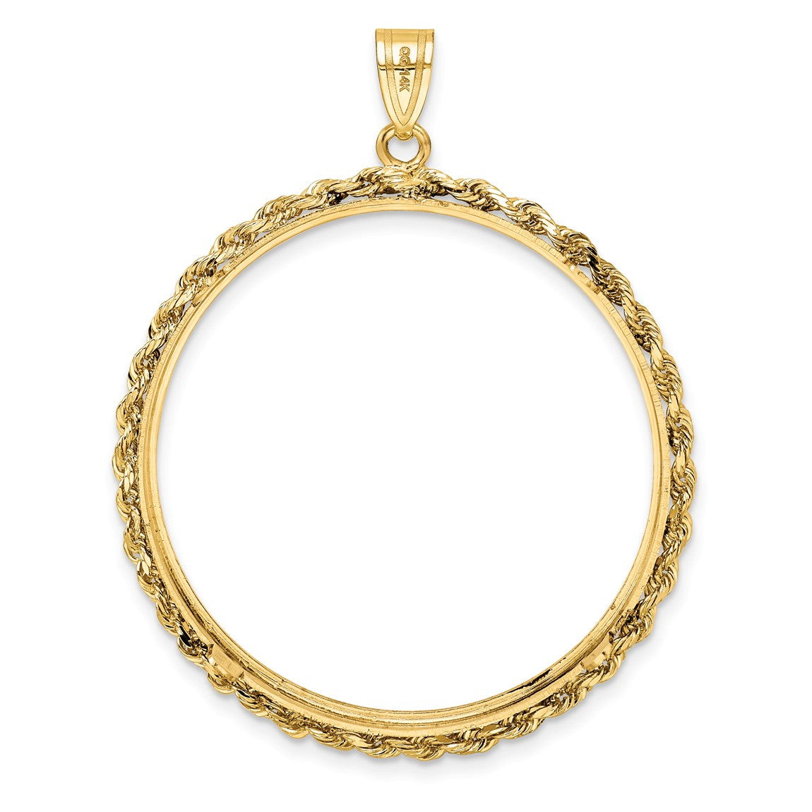 14k Yellow Gold 2mm Rope Edge 34.2mm Prong Coin Bezel Pendant - Fits US $20 Liberty and US $20 St. Gaudens