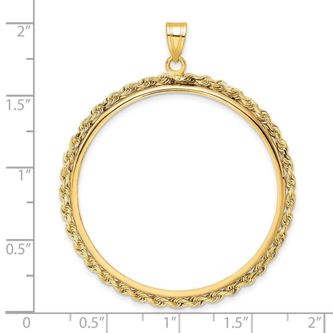 14k Yellow Gold 2mm Rope Edge 37mm Prong Coin Bezel Pendant - Fits 50 Pesos and Centenario