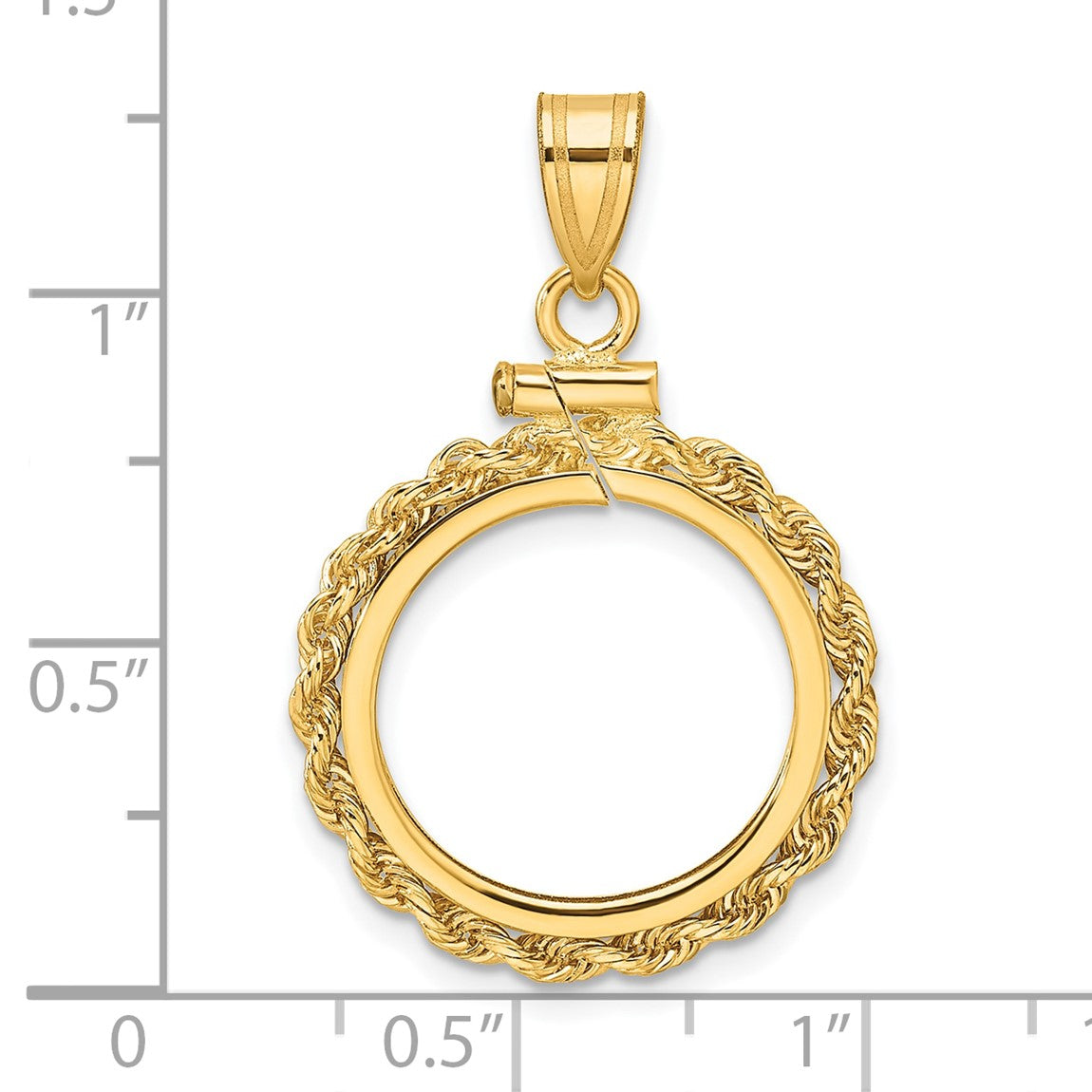 14k Yellow Gold 2mm Rope Screw Top 16.5mm Coin Bezel Pendant - Fits 1/10 oz American Eagle and 1/10 oz Krugerrand