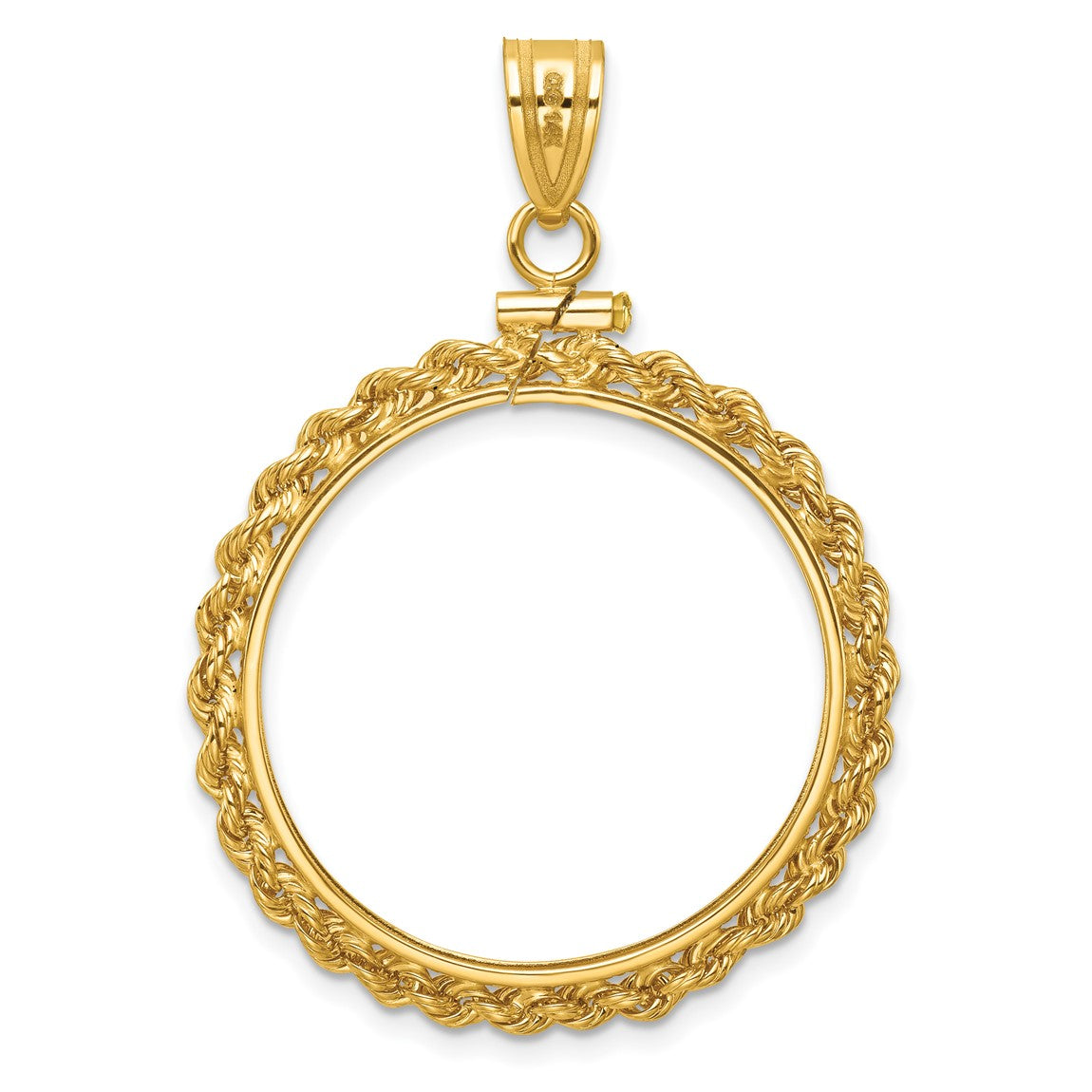 14k Yellow Gold 2mm Rope Screw Top 25.0mm Coin Bezel Pendant - Fits 1/2 oz Maple Leaf and Other Coins