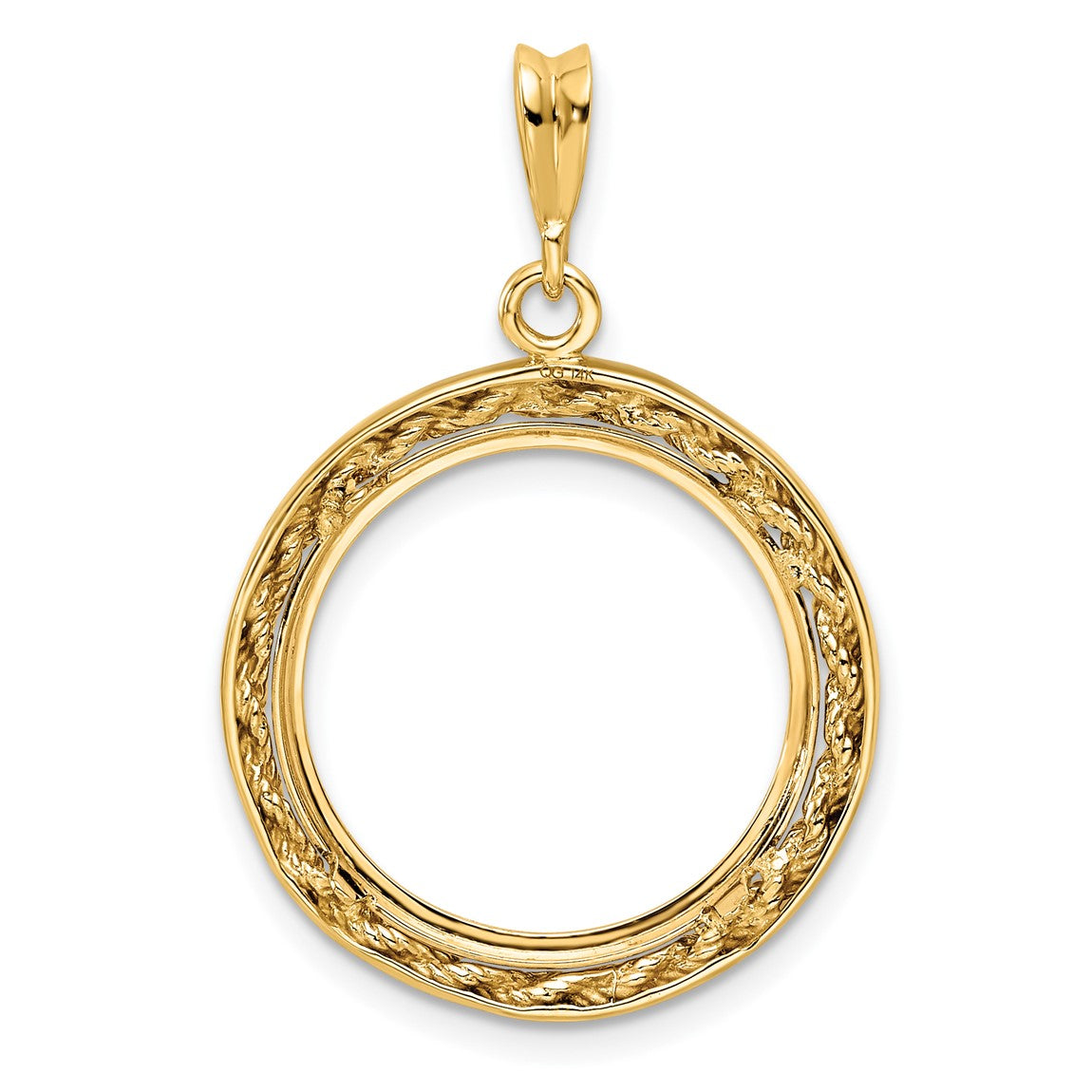 14k Yellow Gold 2mm Rope w/ Bright Edge 17.8mm Prong Coin Bezel Pendant - Fits US $2.50 Liberty and Other Coins