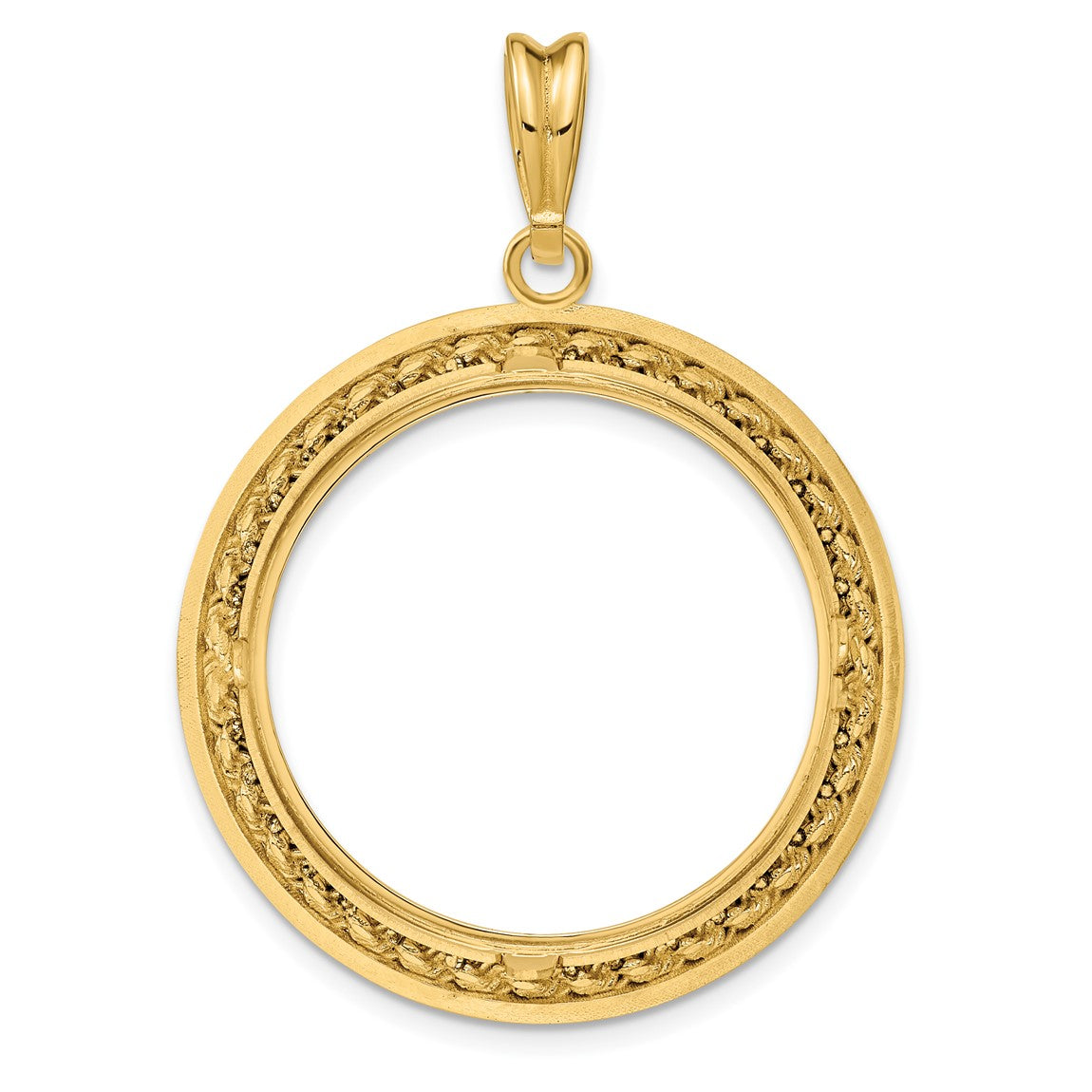 14k Yellow Gold 2mm Rope w/ Bright Edge 27mm Prong Coin Bezel Pendant - Fits 1/2 oz American Eagle, US $10 Liberty, and Other Coins