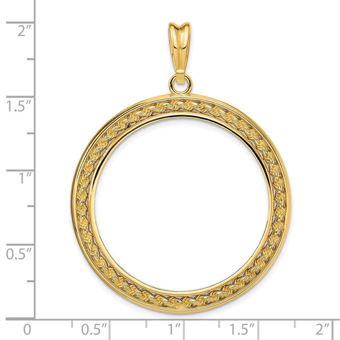 14k Yellow Gold 2mm Rope w/ Bright Edge 32mm Prong Coin Bezel Pendant - Fits 1 oz Australian Nugget, 1 oz Kangaroo, 1 oz Panda, and Other Coins
