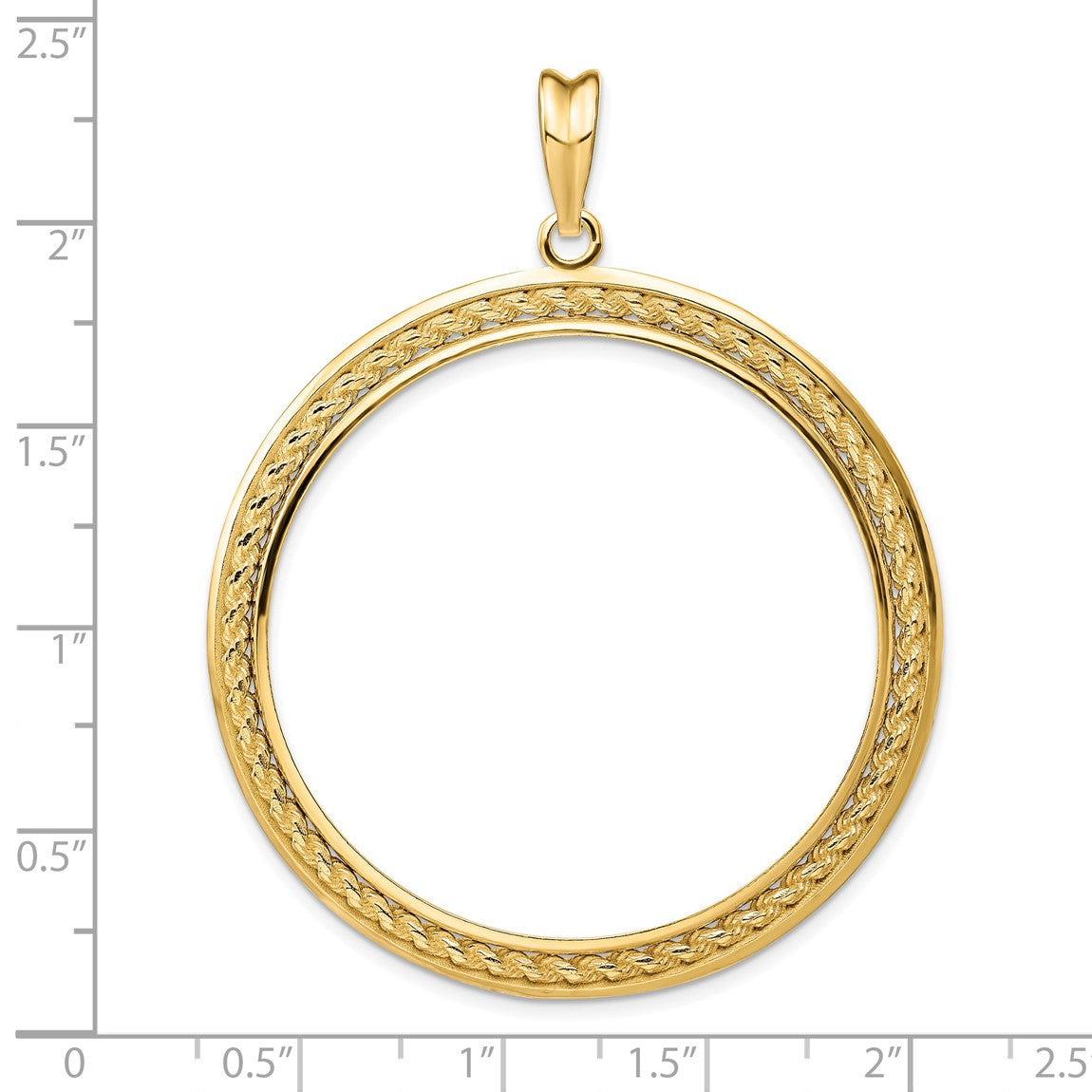 14k Yellow Gold 2mm Rope w/ Bright Edge 39.5mm Prong Coin Bezel Pendant - Fits 4 Ducat