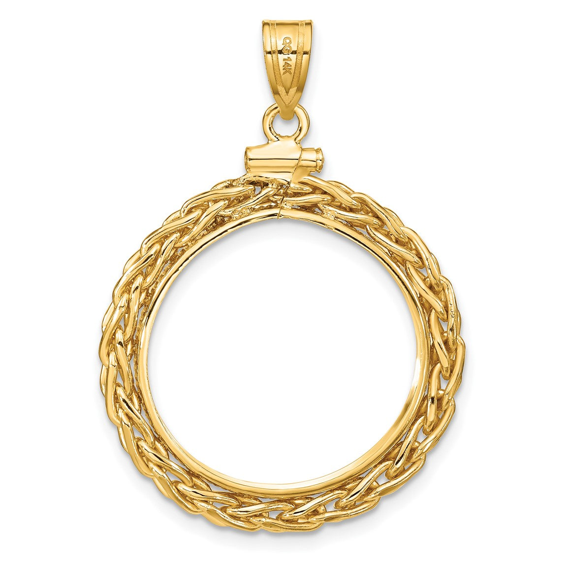14k Yellow Gold 3.5mm Wheat Chain Screw Top 22mm Coin Bezel Pendant - Fits 1/4 oz American Eagle and Other Coins