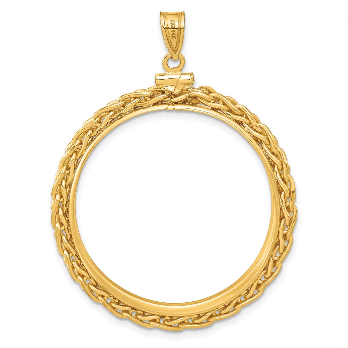 14k Yellow Gold 3.5mm Wheat Chain Screw Top 32mm Coin Bezel Pendant - Fits 1 oz Australian Nugget, 1 oz Kangaroo, 1 oz Panda, and Other Coins