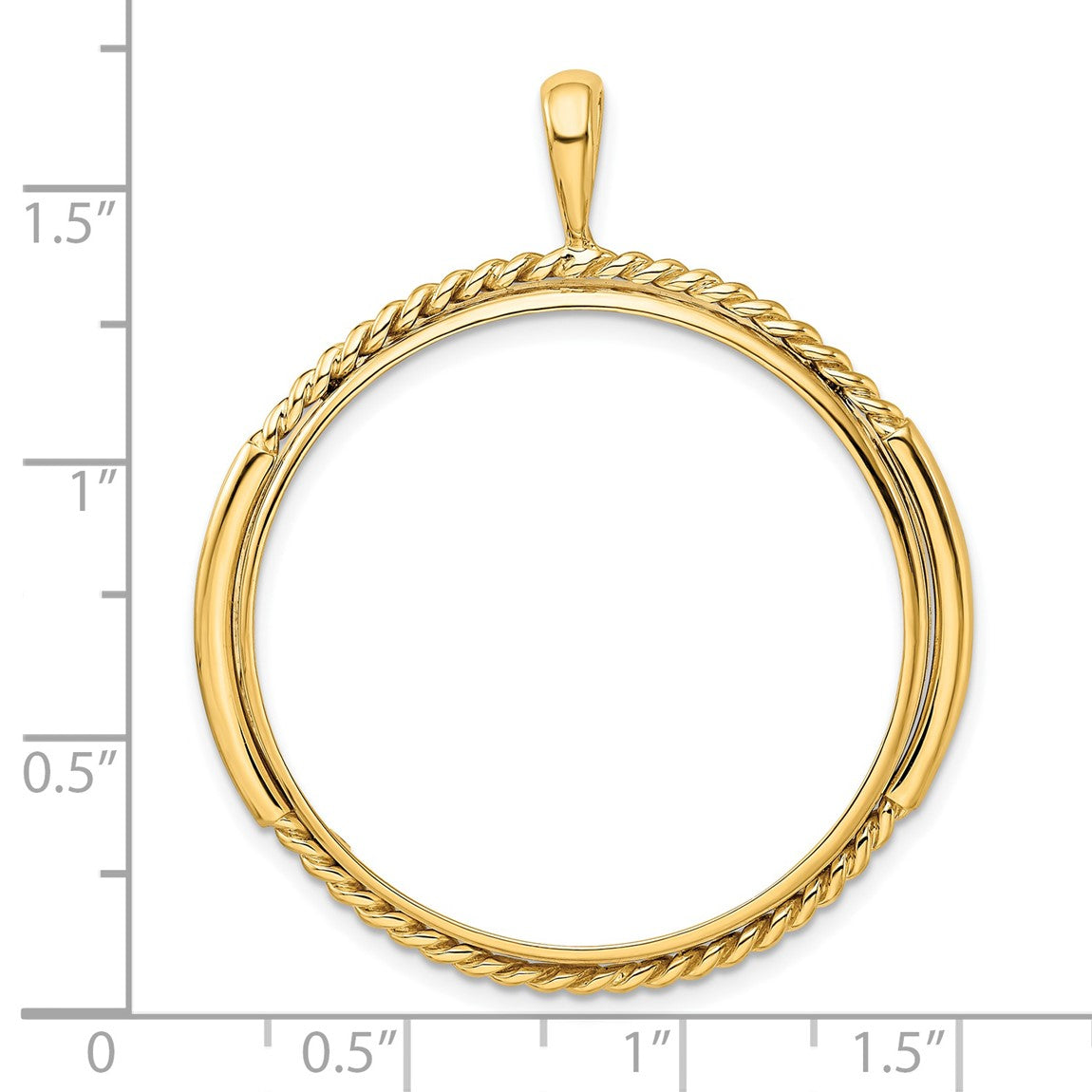 14k Yellow Gold 32.7mm Double Twisted w/ Polished Edge Prong Coin Bezel Pendant - Fits 1 oz American Eagle, 1 oz Cat, and 1 oz Krugerrand