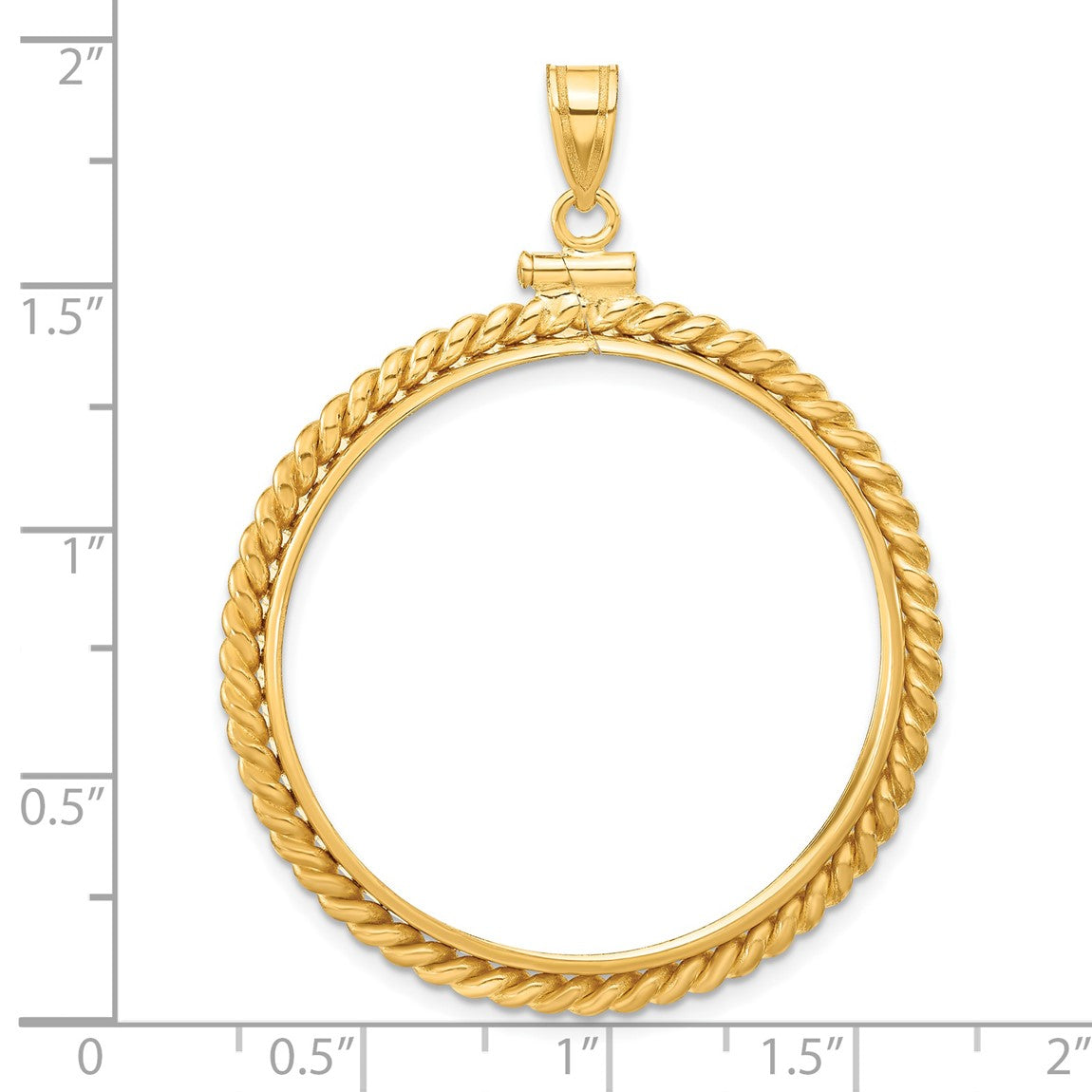 14k Yellow Gold 32.7mm Twisted Wire Screw Top Coin Bezel Pendant - Fits 1 oz American Eagle, 1 oz Cat, and 1 oz Krugerrand