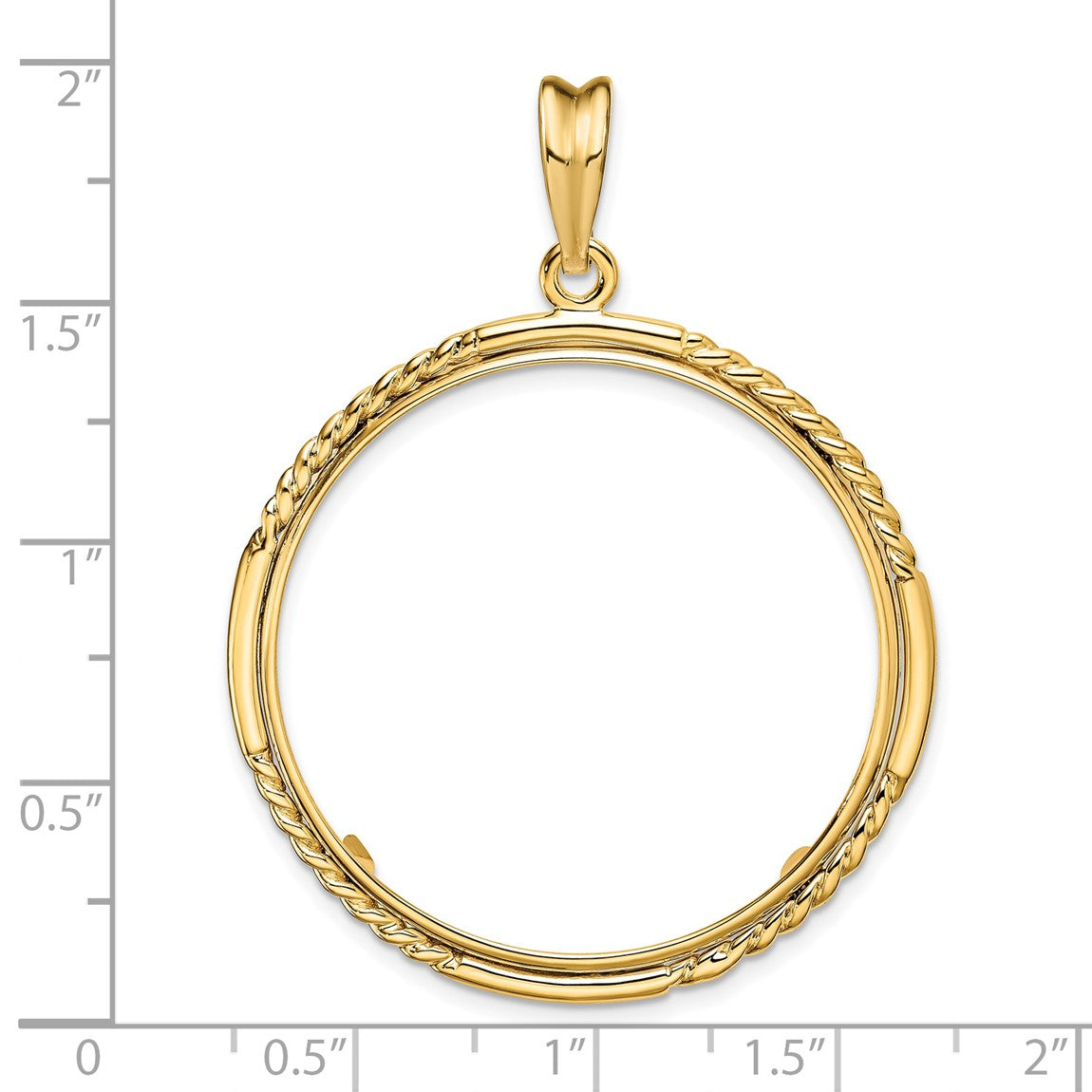 14k Yellow Gold 32mm Quadruple Twist & Bright Prong Coin Bezel Pendant - Fits 1 oz Australian Nugget, 1 oz Kangaroo, 1 oz Panda, and Other Coins