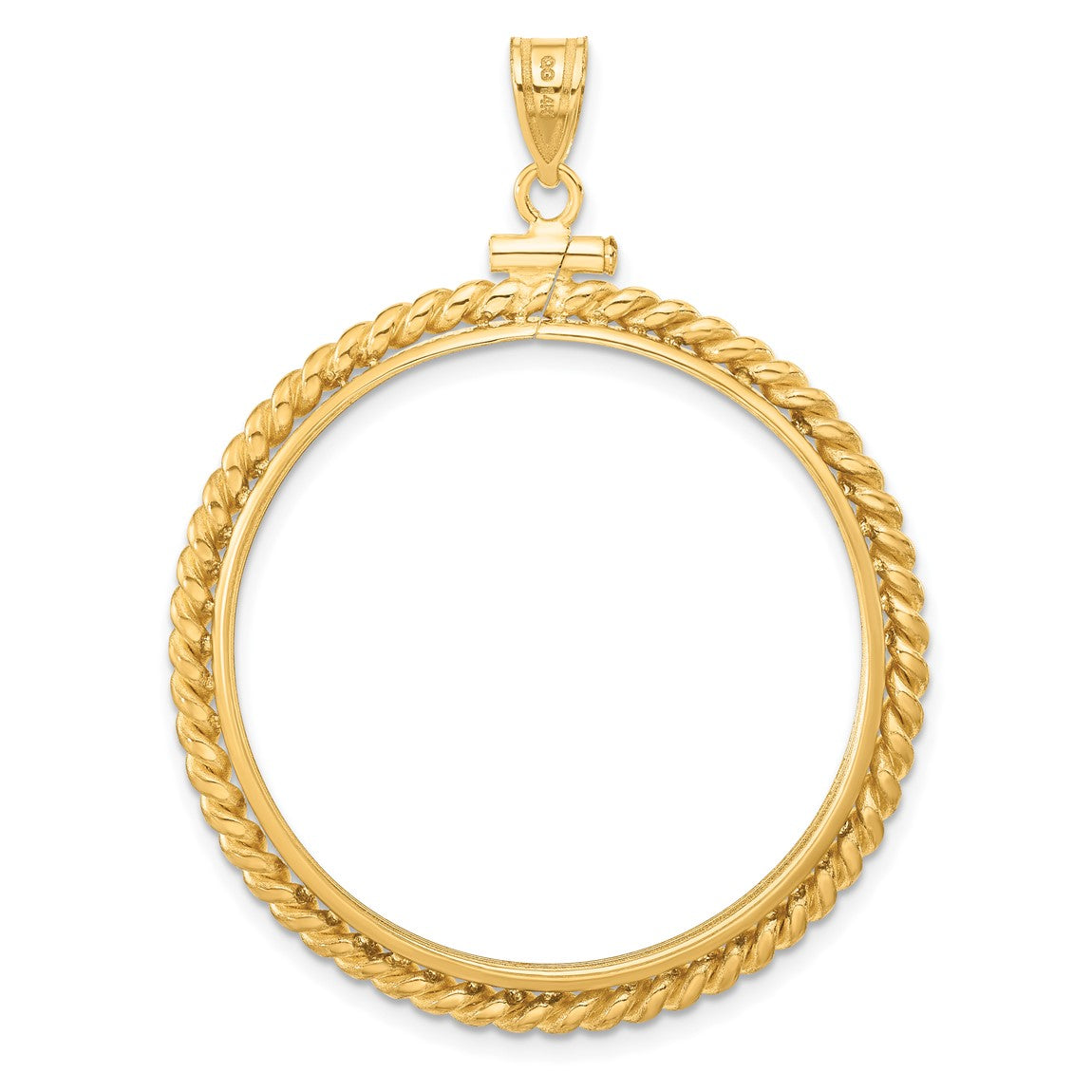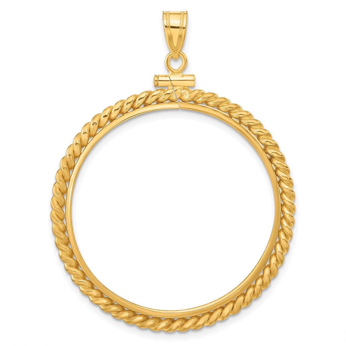 14k Yellow Gold 32mm Twisted Wire Screw Top Coin Bezel Pendant - Fits 1 oz Australian Nugget, 1 oz Kangaroo, 1 oz Panda, and Other Coins