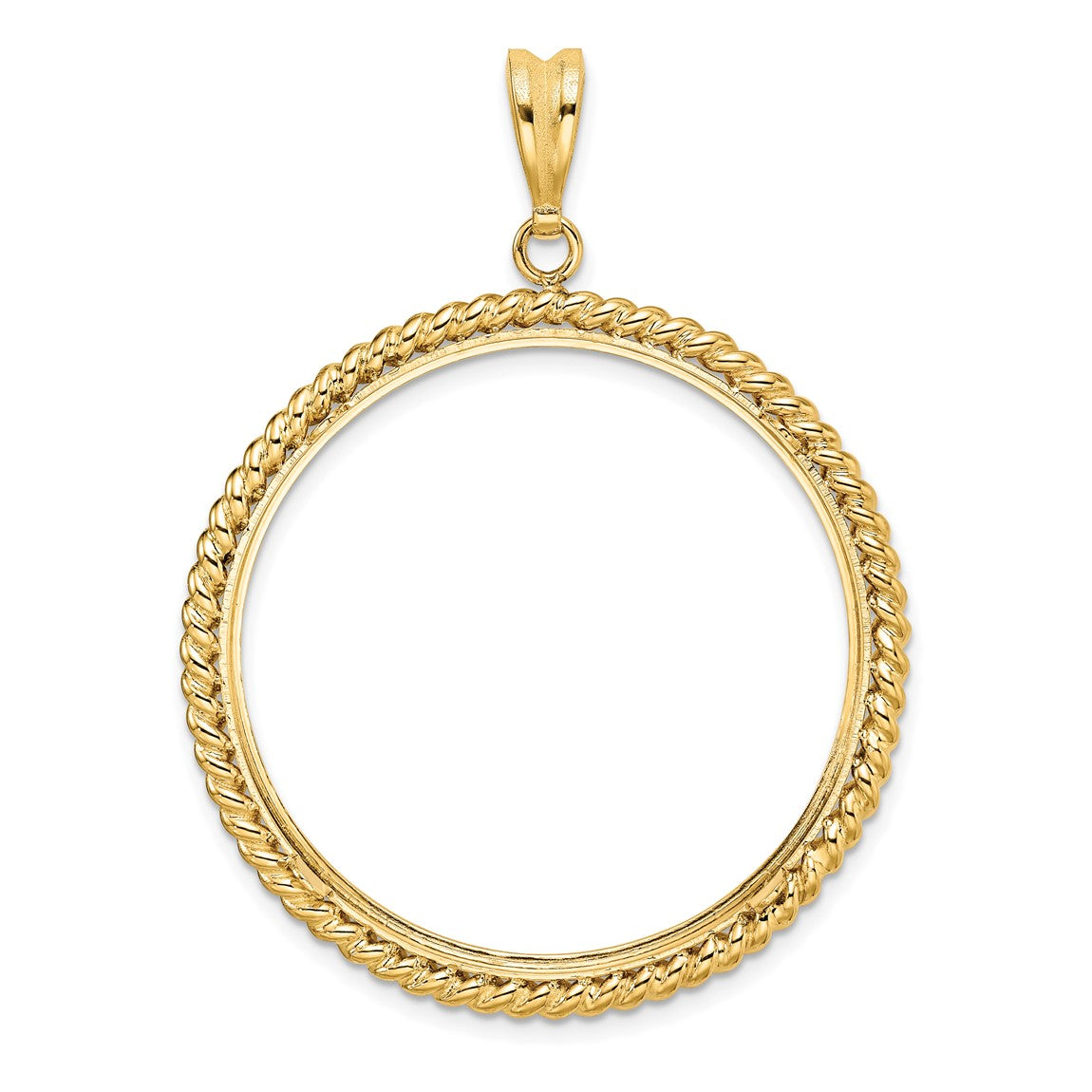 14k Yellow Gold 34.2mm Twisted Wire Prong Coin Bezel Pendant - Fits US $20 Liberty and US $20 St. Gaudens