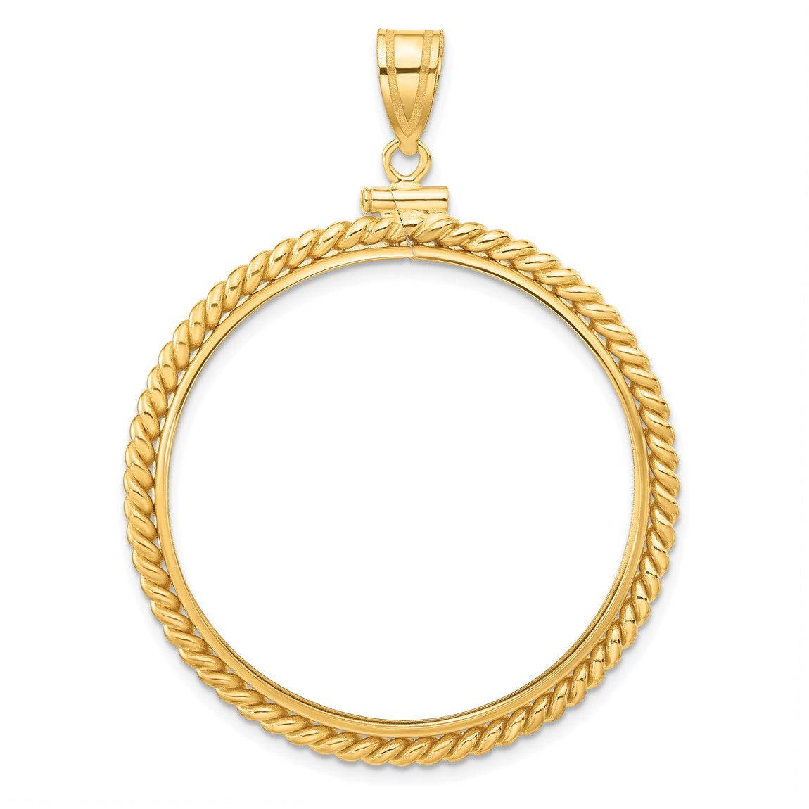 14k Yellow Gold 34.2mm Twisted Wire Screw Top Coin Bezel Pendant - Fits US $20 Liberty and US $20 St. Gaudens